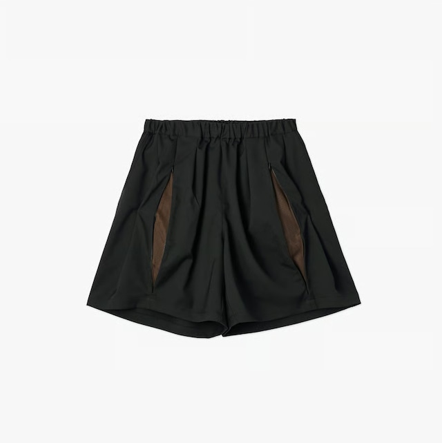 UNTRACE定番のニーショーツにディテールを加え、機能性とデザイン性をアップデートしたベンチレーションショーツ。 素材には、シャリ感のあるポリエステル糸で織り上げた軽量ツイルを使用。 防シワ性・接触冷感・UVカットといった夏に嬉しい機能性に加え、マシンウォッシュ対応でケアも容易。盛夏における快適性を最大限に高めた高機能素材です。 バスケットショーツから着想を得たUNTRACEオリジナルのニーショーツをベースに、フロントにはコンシールファスナーと配色のメッシュ生地を施し、通気性と視覚的なアクセントを両立。 ファスナーは開きすぎない設計とすることで、下着が覗く心配はなく安心して着用いただけす。 猛暑が常態化する日本の夏に向けた、実用的かつモダンな提案です。 Polyester 100% SIZE 1 ウエスト (Waist) 74cm / 股上 (Rise) 31cm / 股下 (Inseam) 20cm / 裾幅 (Hem width) 43cm SIZE 2 ウエスト (Waist) 80cm / 股上 (Rise) 32cm / 股下 (Inseam) 22cm / 裾幅 (Hem width) 44cm ※着用モデル DARK NAVY / OLIVE:178cm / SIZE.2 BLACK / DARK BROWN:178cm / SIZE.1