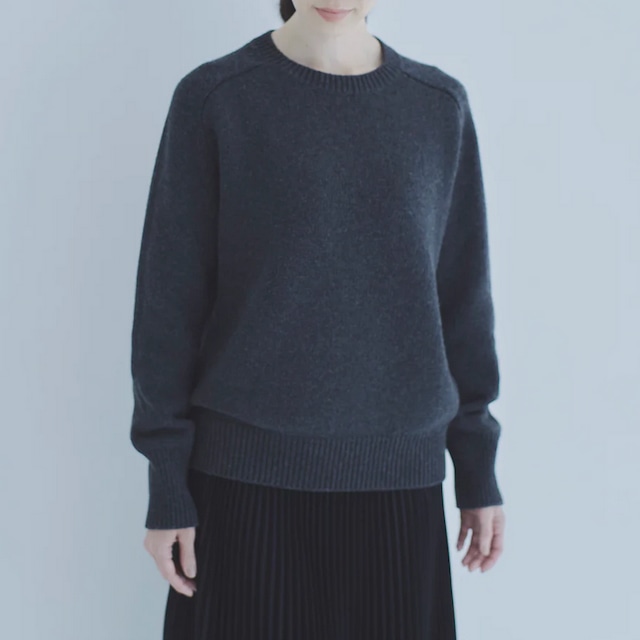 TORICI - knitwear ヴィラン(VILLAN)=悪役】の名を冠したTORICIを代表するヴィランシリーズ。エクストラスーパーファインメリノウール(16マイクロン)を独自の撚り加減に調整。ややノイズの入ったダークトーンな色合いが粗野で実直な印象です。 ヴィランシリーズのなかでは最も厚手で張りがあり、撚り加減を調整をすることで、毛玉ができづらく、経年変化が楽しめるセーターです。 ゆったりとした身幅、すっきりとしたラグランスリーブ、長めの袖口。上品さもありながら、リラックスした着心地の1枚です。 カラー:ブラック サイズ| 1号:着丈58 ⾝幅44 裄丈75(cm) 2号:着丈60 ⾝幅50 裄丈77(cm) 3号:着丈66 ⾝幅54 裄丈85(cm) 4号:着丈69 ⾝幅58 裄丈88(cm) 重さ| 1号:約430(g) 2号:約450(g) 3号:約530(g) 4号:約590(g) ゲージ(針の密度)|5ゲージ