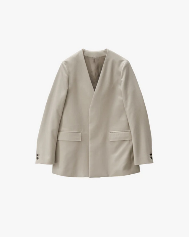 - Graphpaper - ラペルレスで肩に添うスッキリとしたシルエットのテーラリングジャケット。ボタンの見えない比翼仕立てはミニマルな美しさを纏う一着に。ふっくらと柔らかく仕上げたフラノを高密度で織り上げたフランネル素材は深みのある上品な光沢と力強いハリが特徴です。 素材:WOOL 100% SIZE00: 着丈74 肩幅50 身幅41 身幅60 SIZE0: 着丈77 肩幅51 身幅42 身幅62 (cm) ※モデル 身長177cm / 着用サイズ 0
