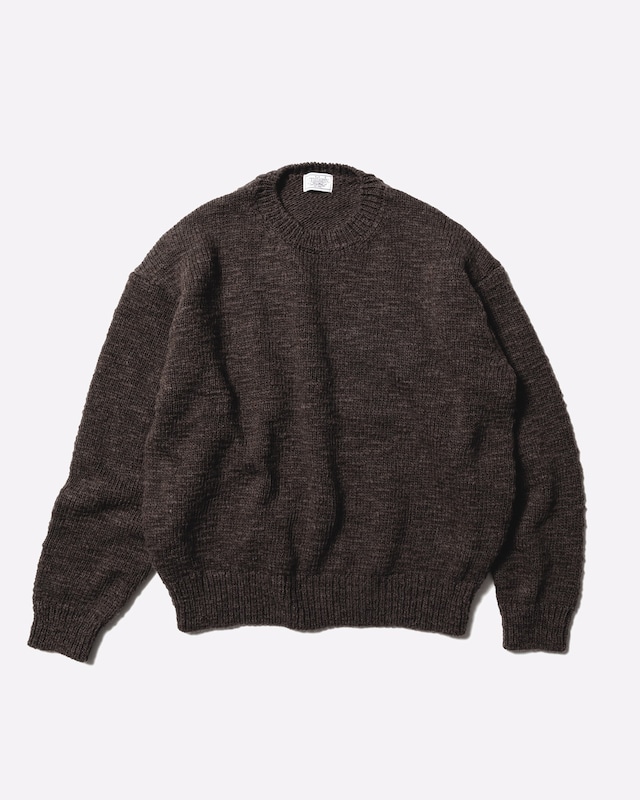 - Unlikely - スラブ感が強い英国羊毛を使用したローゲージセーターです。シンプルながらも3ゲージというかなり太い糸を使用し、なおかつ洗い をかけてふっくらと、そしてたっぷりとしたサイズ感編み立てました。イエティのようなボリュームのあるフォットで楽しむこのがで きるセーターです。 Wool 100% SIZE M 着丈58 身幅64.5 着丈65.5 袖丈59(cm) SIZE L 着丈60 身幅68 着丈70 袖丈60(cm) *計測サイズはあくまで参考の数字です。測り方に寄りましては多少の違いが出ますのでご了承下さい。