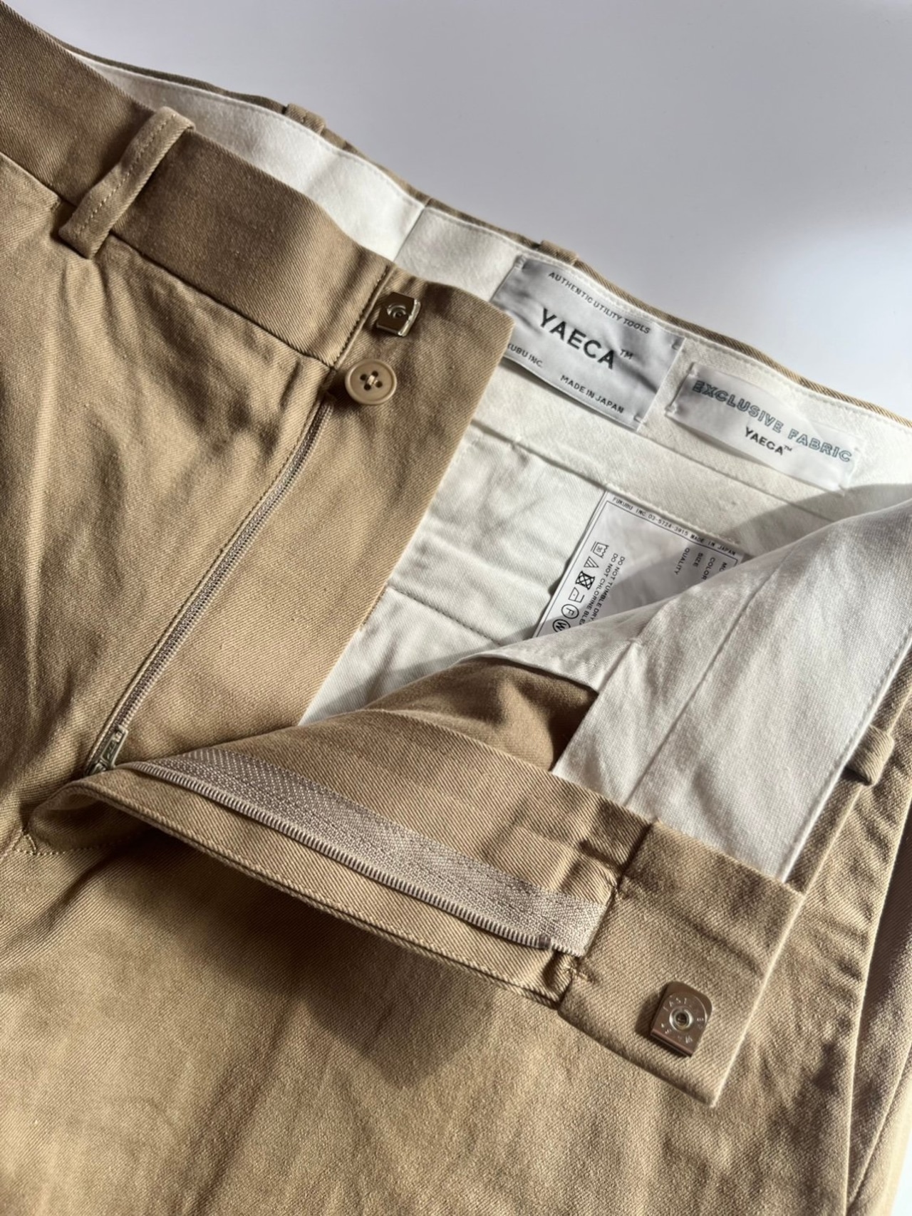 1950年代の旧式の織り機で織られたチノクロスは、履きこむほどに味わい深くなって愛着がわきます。