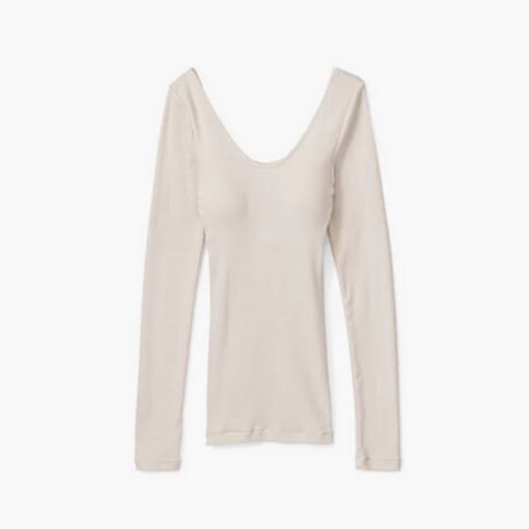 世界中のコットン生産量の10万分の1以下しか収穫できない貴重な綿であるアメリカンシーアイラ ンドコットン。シルクを凌ぐ光沢と繊細な柔軟性を持ち、繊維に含む油脂分が多いためソフトなタッチで吸水性も抜群。脇に縫い目の無い丸胴のインナーウェア。締め付けの少ない快適な着ごこちと美しいシルエットを追求した。