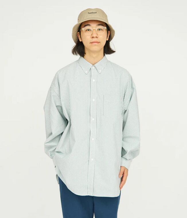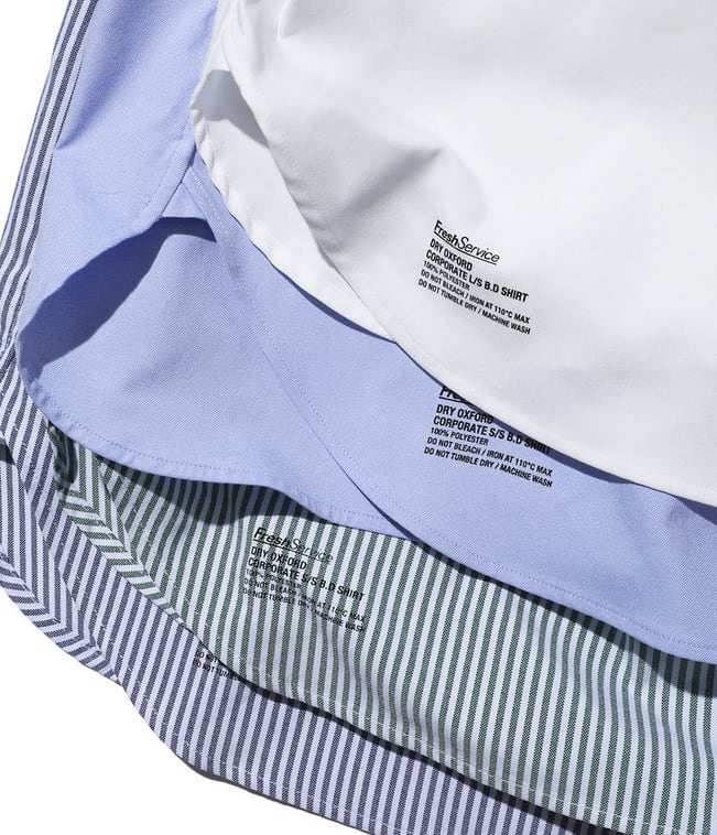 特殊な断面を持つポリエステル糸を使用しており、コットンライクな佇まいに仕上げながらも優れた速乾性とドライな肌あたりを両立。余白のあるリラックス感のあるボタンダウンシャツは、一見するとシンプルなルックスでありながら、サイドシームに大容量のポケットを隠し持つFreshServiceらしいアイテムです。洗濯してもすぐ乾く、毎日着たくなるような一着。