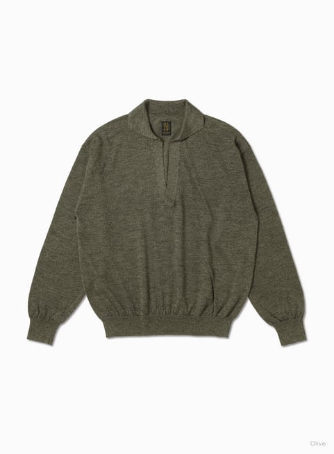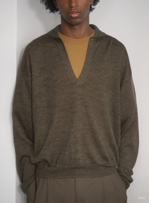 細番手のラミーと細番手のウールの梳毛を撚糸した糸を、あえてゆるく編んだシアー感のあるシリーズ。