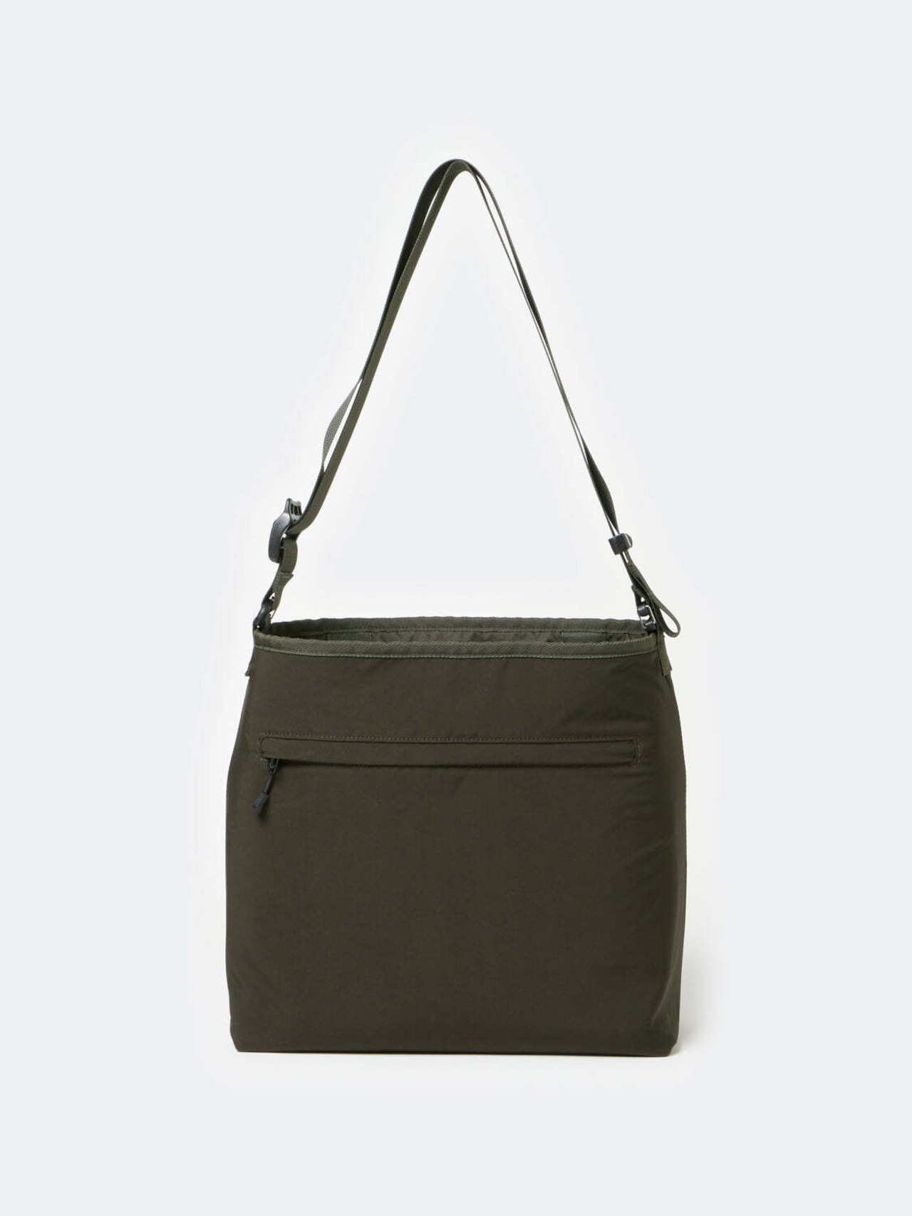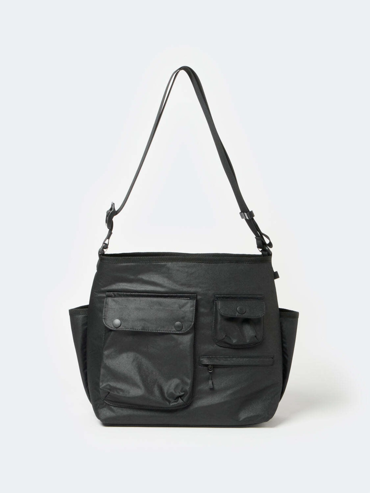 ワンショルダーバッグをリバーシブルで使用できるようにアレンジ。表面は様々なアイテムを収納できるマルチポケットを配し、裏面はシンプルなショルダーバッグをイメージして製作。