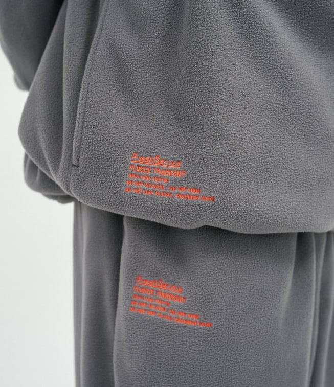 出版やWebデザイン、アパレルまで多岐にわたる活動で注目を集めるデザインスタジオ 『Actual Source』とのコラボレーションから生まれたカプセルコレクション。彼らのグラフィックをワンポイントに落とし込んだ「FLEECE TRACK SUIT」は、柔らかなフリース素材を用いたセットアップアイテムです。ドロップショルダーによるリラックス感のあるオーバーサイズシルエットが特徴で、ストリートからラウンジウェアまで幅広いシーンにマッチ。軽快さと存在感を兼ね備え、デイリーに着こなせる一着です。