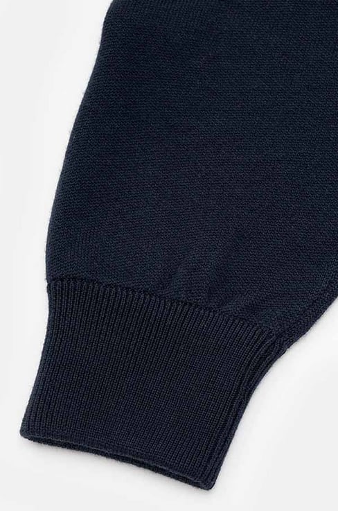 しっかりした生地感とメリノウールの柔らかな着心地が快適です。手洗い可能。