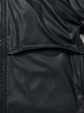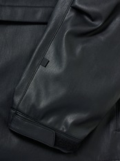 どこか懐かしいウィンドブレーカージャケットをシンセティックレザーにてアレンジした意欲作。シンプルなデザインにしているが、フロントにはサイドポケット、ベンチレーション部を活用したフラップポケットなど、隠れた機能を持たせている。内側は総裏メッシュ仕立てで、ドライタッチに着用できるのもポイント。 大小様々なポケットワークを施し、タックルケース、ルアーケース、モバイルなどを収納出来るようデザイン。見た目以上に収納力の高いトラックジャケット。インナーには複数のインサイドポケットを配しており、十分な収納力を持ち合わせている。ミリタリーのディテールでもある前振りの袖がデザインアクセント。アクションプリーツを加え、腕の可動域を広げられるように考えたデザイン。