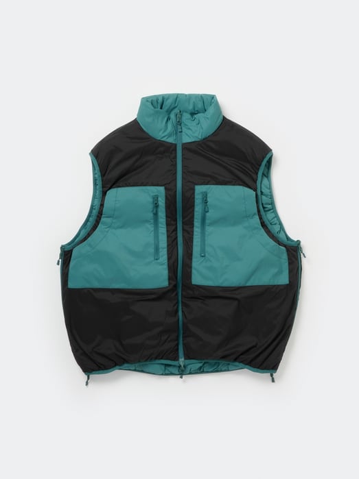 リバーシブルで着用できる中綿ベスト。1990年代のデザインを彷彿とさせる外観、表側は随所に見られるパイピングワーク、裏側は2000年代のアウトドアブランドに見られるシンプルな胸ポケットが特徴。シンプルながらも機能的で着こなしの幅を広げてくれるアイテム。プリマロフトを採用し従来の中綿の約2倍の断熱効果、速乾性、そして防寒性を高めた。