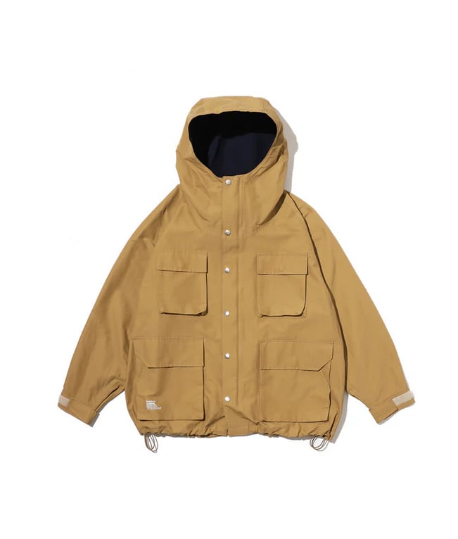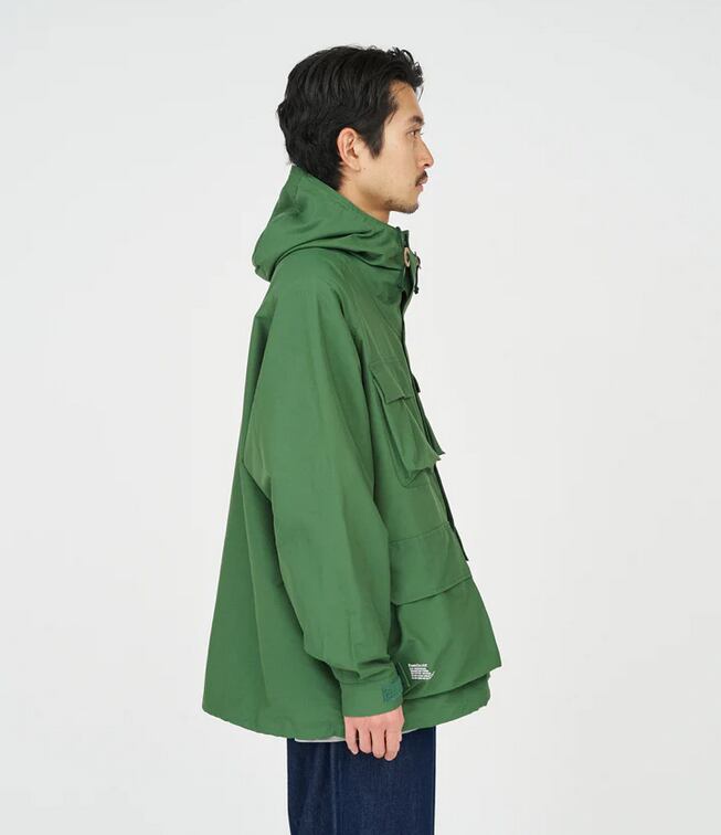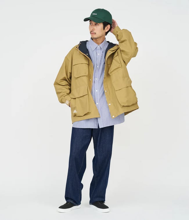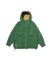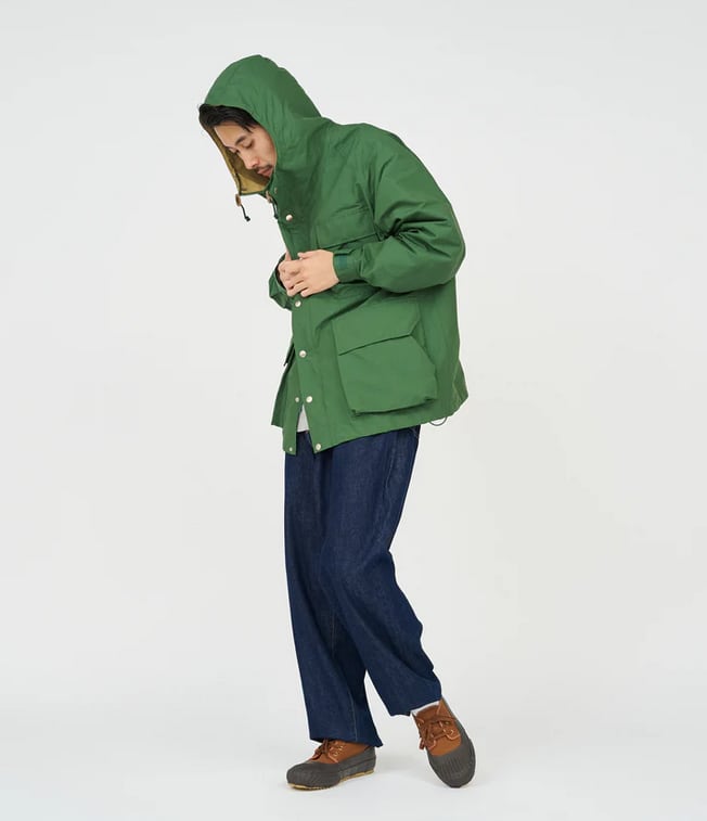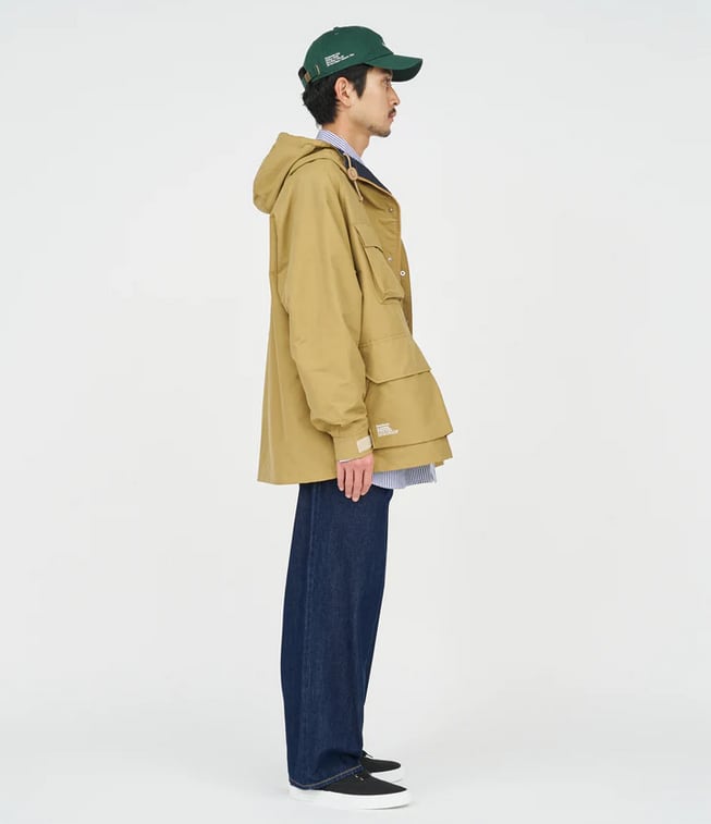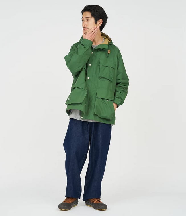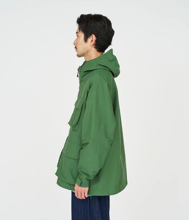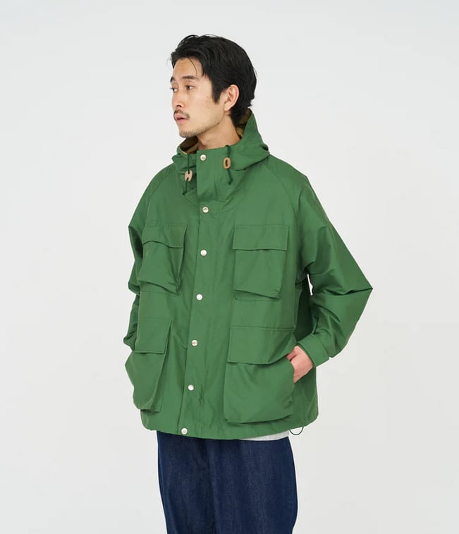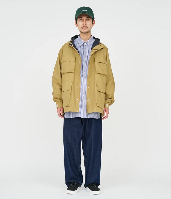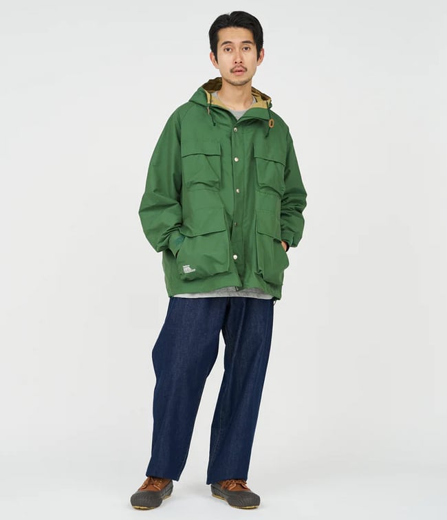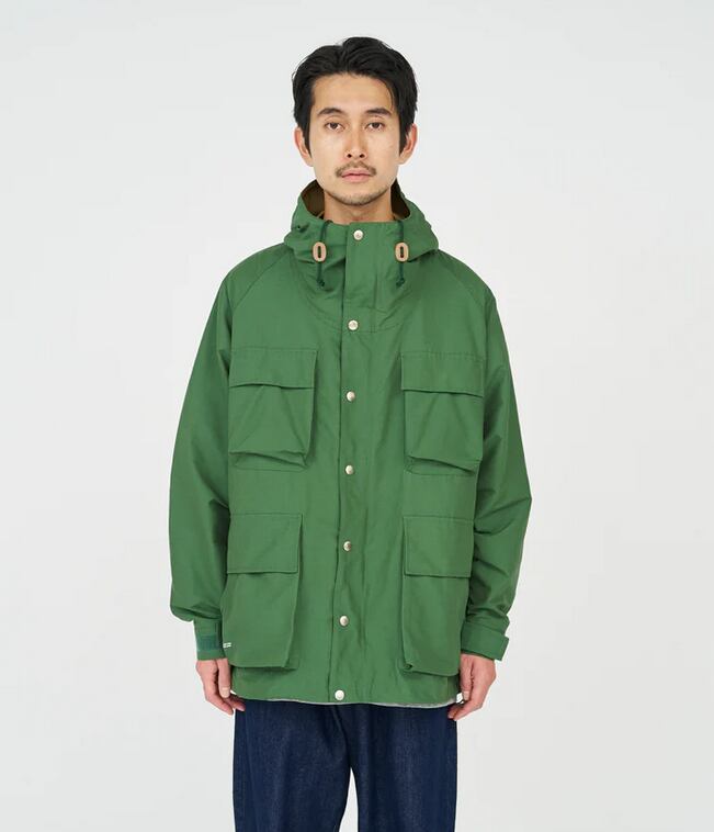 クラシックなアウトドアムードを纏いつつ、現代的なシルエットに仕上げたマウンテンパーカー。表地には耐摩耗性に優れたコットン65%/ナイロン35%のグログラン生地を使用。コットンの膨潤性とナイロンの強度によって、小雨程度なら水を弾きやすく、タフに着込むほど風合いが増していきます。大小のユーティリティポケットや二重前立て、裾やフードのドローコードなど実用的なディテールを搭載。リラックス感のあるシルエットで、アウトドアからタウンユースまで幅広く活躍します。