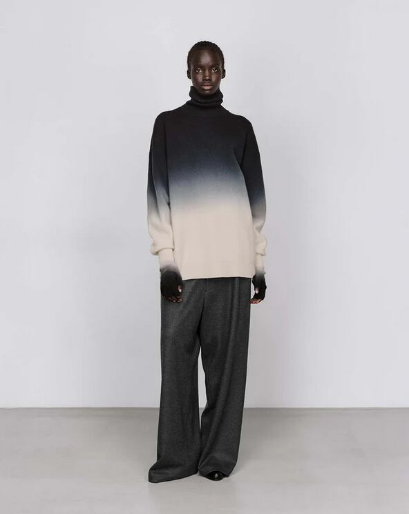 上質で膨らみのある紡毛糸を使用したミドルゲージニットのフィンガーレスグローブ。柔らかな風合いと適度な保温性を備えつつ、手先の自由を確保した実用的なデザイン。コレクションのカラーパレットを反映し、段階的にトーンが変化する美しいグラデーションが特徴です。