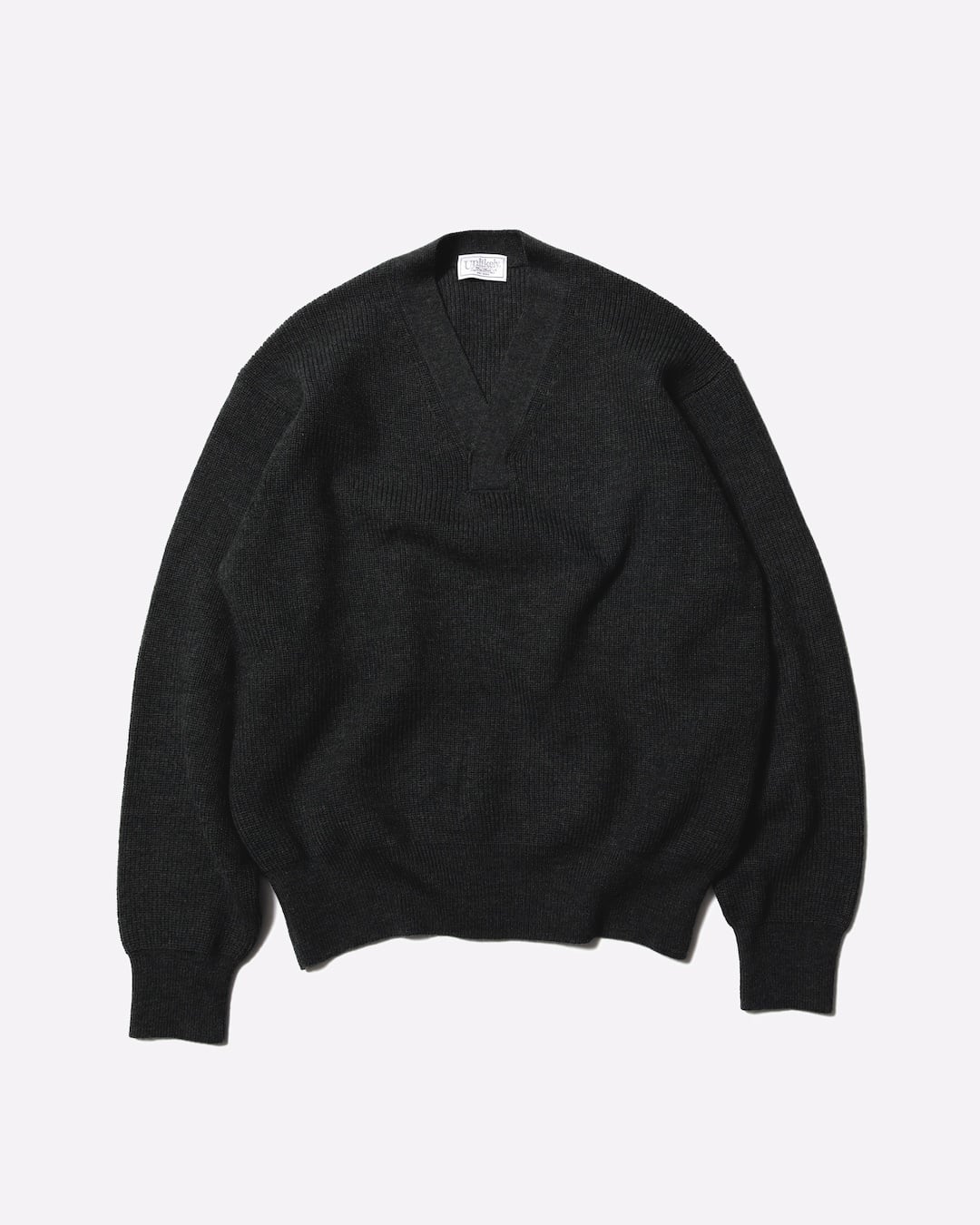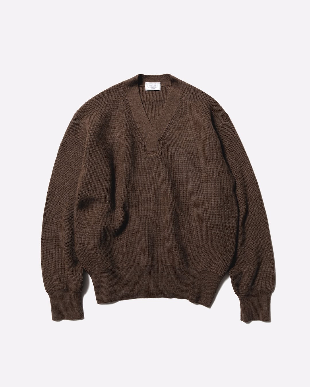 特徴的なVネックを搭載したU.S.A.A.Fのメカニック用セーターをUnlikely流にアップデイトいたしました。オーストラリア産のラムの光 沢感と柔軟性、成羊メリノの強力弾力性を持った羊毛を主原料とし、タスマニアウールをブレンドしたハイグレードな梳毛糸を使用し 贅沢に作成いたしました。