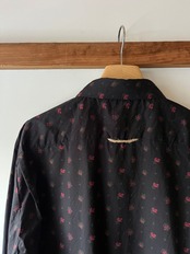 LIBERTY LONDON社の平織素材を使用。柔らかく軽やかな肌触りが特徴のファブリックです。ブロックプリントで小ぶりなフラワーモチーフを連続的に描いたclioという名前の総柄生地をYAECAのために色別注した特別なファブリック。
