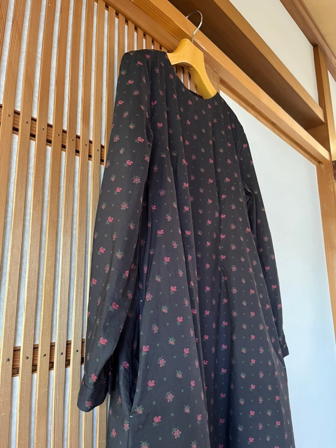 LIBERTY LONDON社の平織素材を使用。柔らかく軽やかな肌触りが特徴のファブリックです。ブロックプリントで小ぶりなフラワーモチーフを連続的に描いたclioという名前の総柄生地をYAECAのために色別注した特別なファブリック。