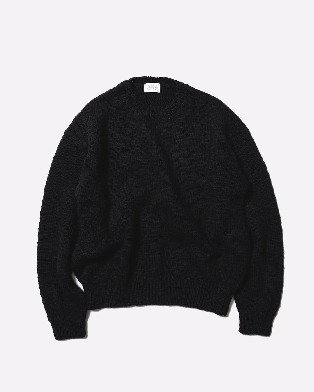 スラブ感が強い英国羊毛を使用したローゲージセーターです。シンプルながらも3ゲージというかなり太い糸を使用し、なおかつ洗い をかけてふっくらと、そしてたっぷりとしたサイズ感編み立てました。イエティのようなボリュームのあるフォットで楽しむこのがで きるセーターです。