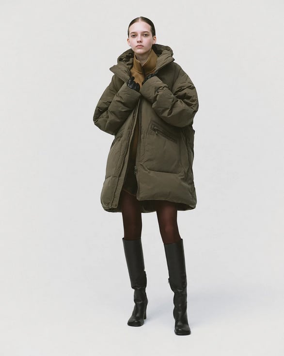 アメリカ軍のカデットパーカをデザインソースに2WAY仕様、ダウンジャケットにアレンジしたモデル。2WAYでロング丈、ショート丈とアレンジできるデザイン。フートはジッパーを開けるとセーラー仕様に。開いたフードの先端をドットボタンで留めることにより立ち襟のデザインにアレンジが可能。また内側に大小様々なポケットワークを施し、タックルケース、ルアーケース、モバイルなどを収納出来るようデザイン。見た目以上に収納力の高いブルゾン。ミリタリーのディテールでもある前振りの袖がデザインアクセント。アクションプリーツを加え、腕の可動域を広げられるように考えたデザイン。
