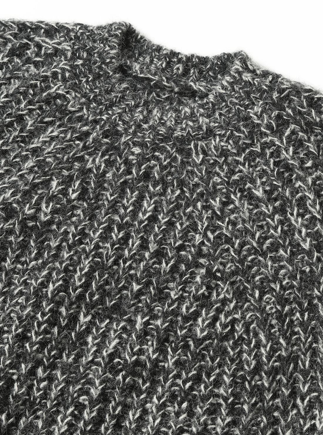 柔らかな風合いを持つファインアルパカに、メリノウールを芯にした起毛糸を多本取りし、ローゲージで編み立て。糸そのものが持つ膨らみにより独特の立体感と、ローゲージならではのざっくり感が特徴の商品。ファインアルパカならではの軽やかな着心地に加え、高い保湿性のある商品。BATONERらしい象徴的な編み柄が際立つ仕上がり。
