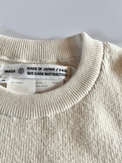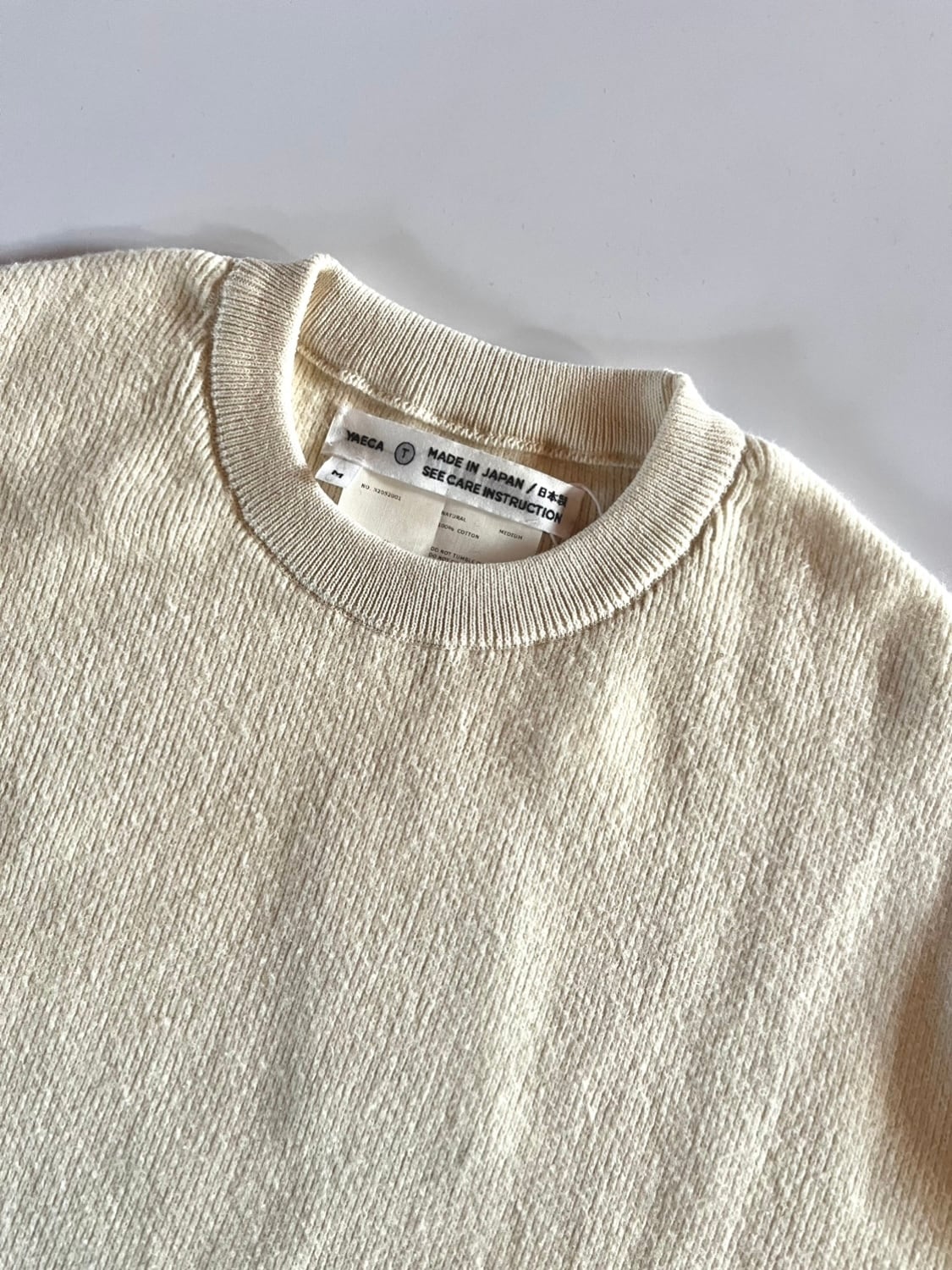 その糸を使って伸縮性のあるフライス編みにしています。コットンの軽さにウールのような暖かみがあるのが特徴です。