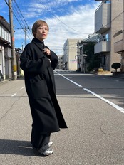 レイヤードがしやすい、ゆったりとしたボックスシルエットで、フロントは比翼仕立て。