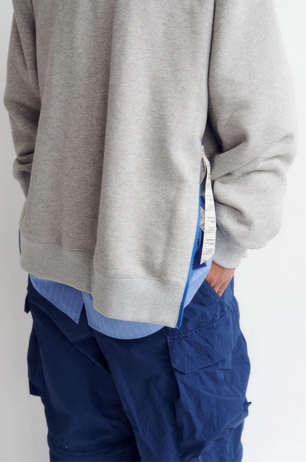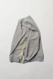 サイドジップ付きのスウェット。裏糸に10番を双糸撚りした糸を配し、立体感のあるループが膨らみを引き出したヘビーウェイトな裏毛を使用。