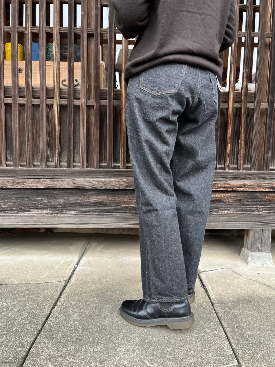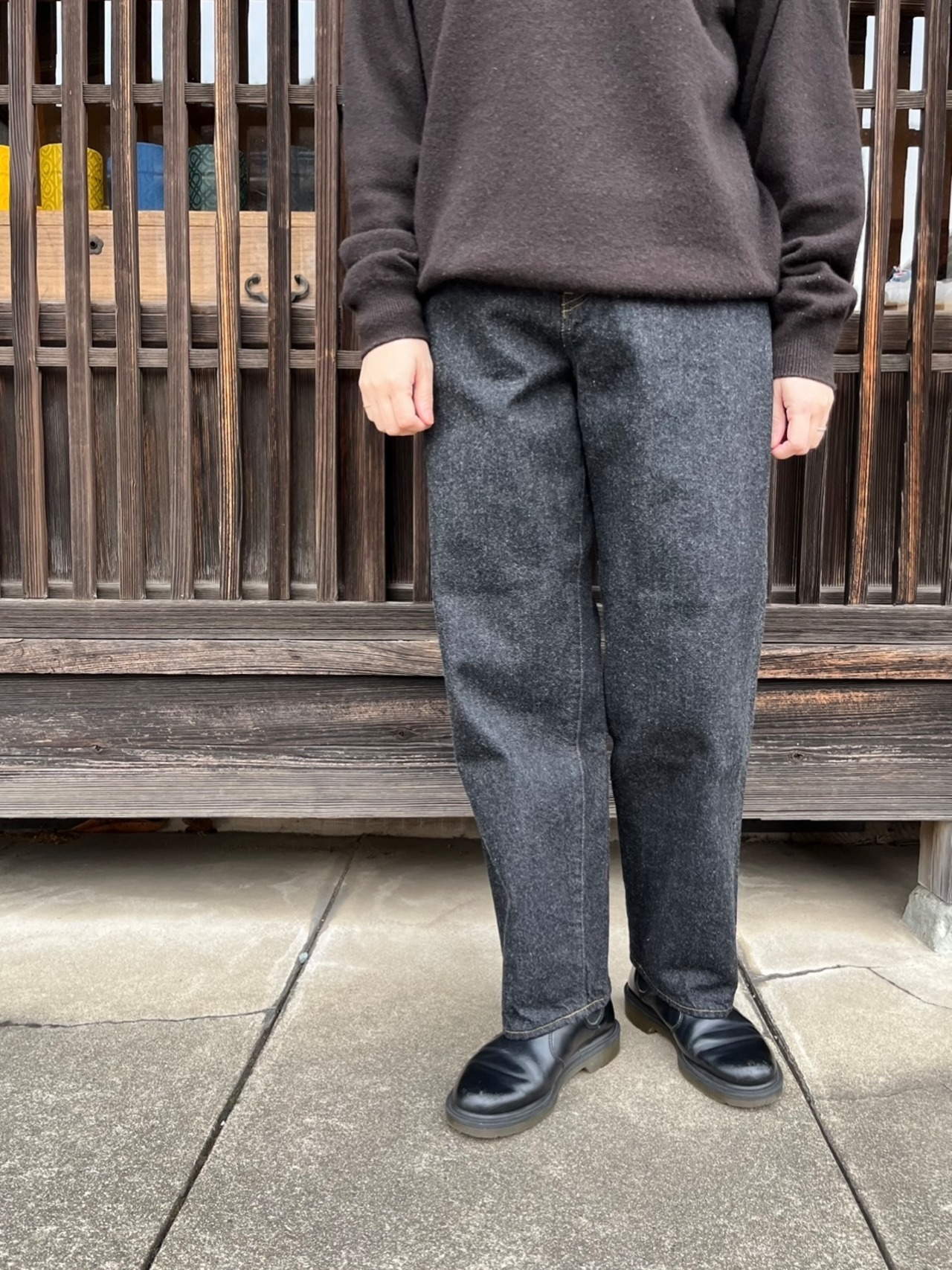 11番は太めのストレート。ウエストを絞っていないメンズライクなデニムです。足元にクッションができない丈で、太めですが、もたつかず、すっきりと穿けます。