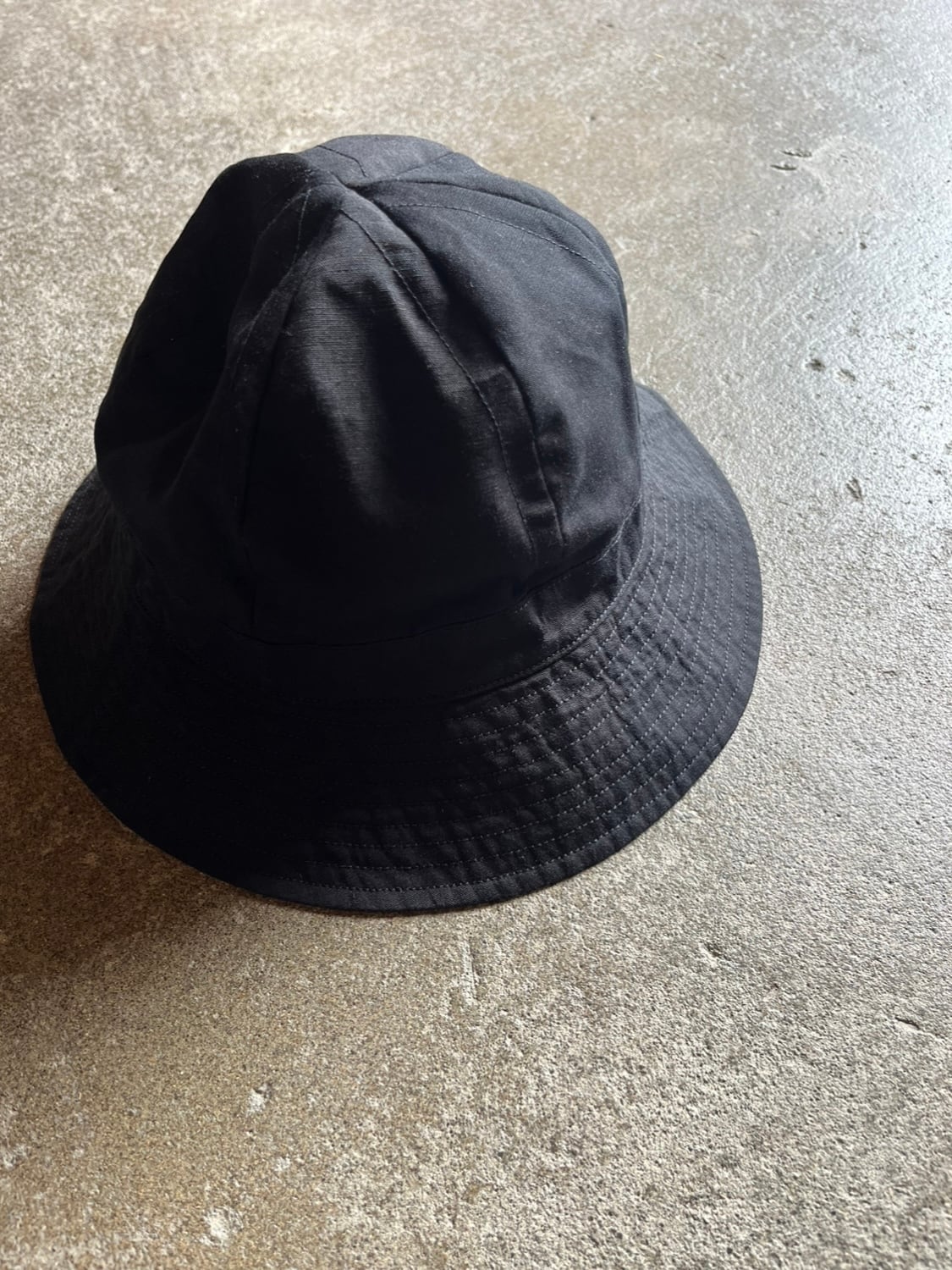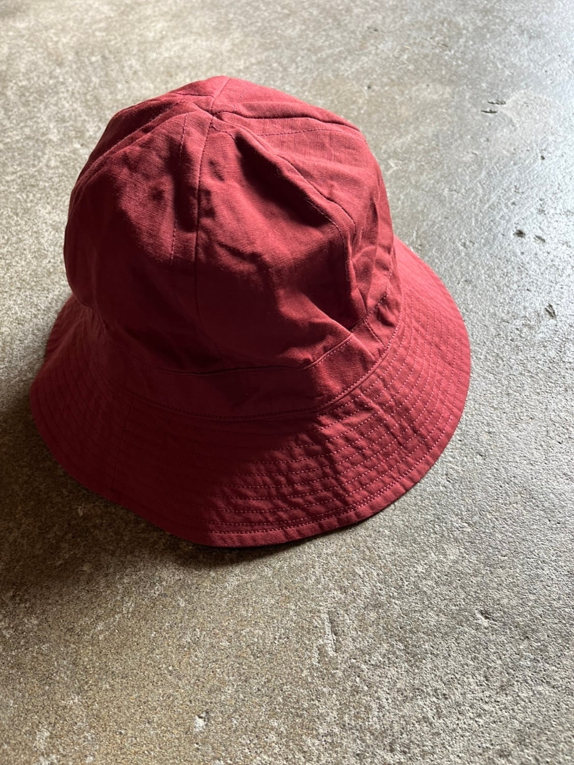小さめのつばに、浅めの被りのコンパクトな帽子です。