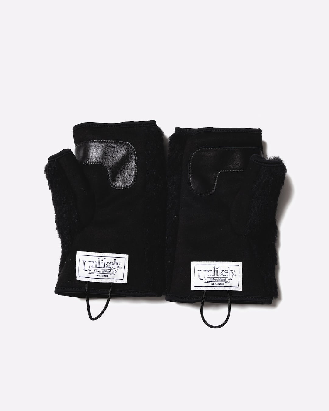 ウールボアとフェイクスウェードのコンビネーションフィンガーレスグローブです。 まるで熊の手のようなボリュームのあるグローブ。掌部にはレザーの当て布がついております。