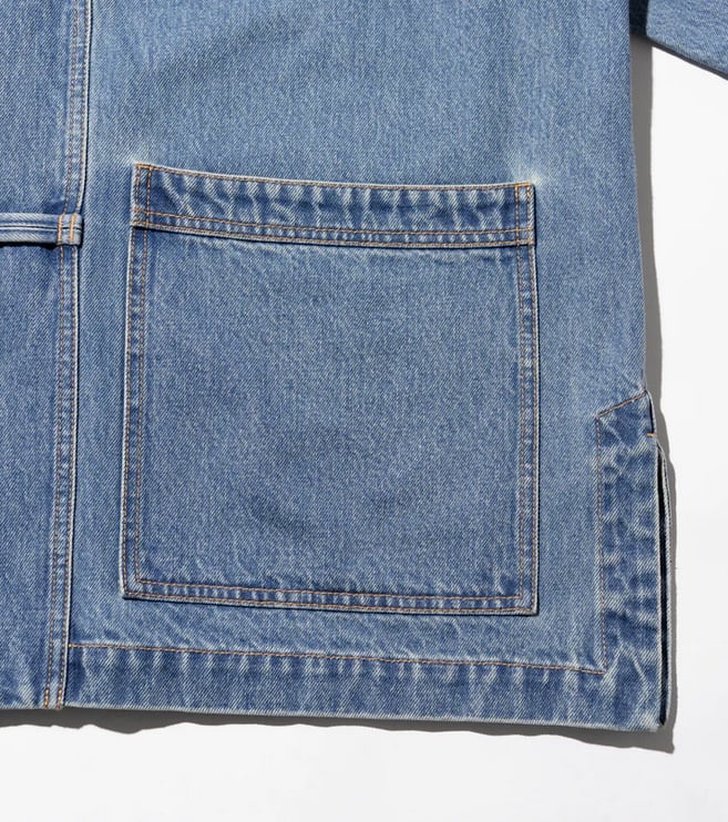 13.5ozのタフなデニムを採用したカバーオールは、ゆったりとしたドロップショルダーのシルエットに、フロントのチャイナボタンがアクセント。着込むほどに表情が深まり、ヴィンテージのようなフェードも楽しめる。同素材で展開されるCORPORATE DENIM EASY PANTS とのセットアップもおすすめ。