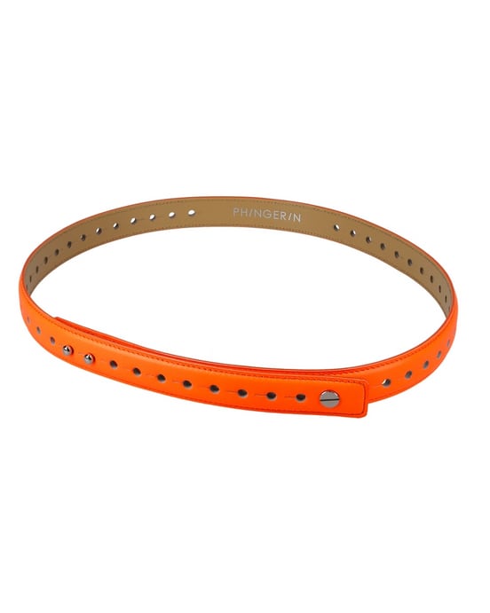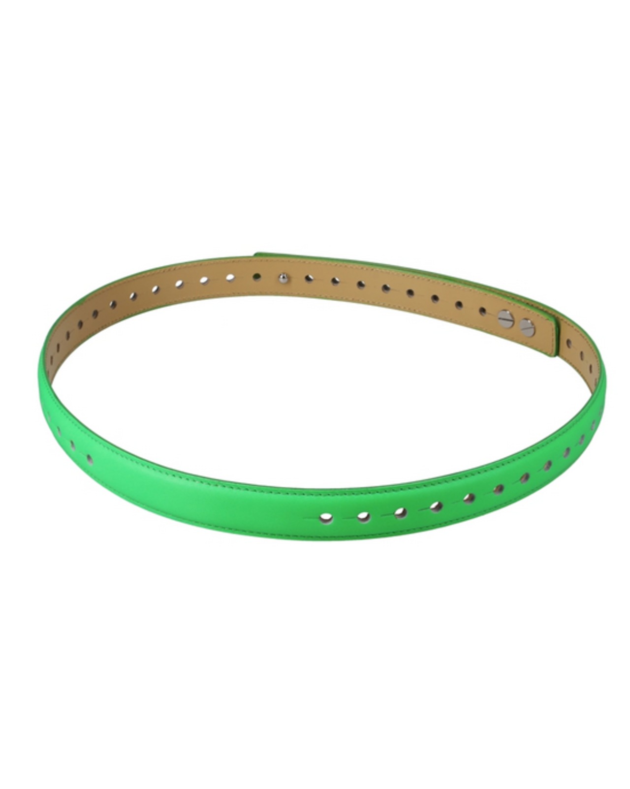 Our signature FLEXI BELT updated in a selection of neon colors. Equipped with pegs and evenly spaced eyelets, allowing for a free-size belt experience. The pegs and eyelets allow for a clean belt experience, keeping the belt from flapping around and hold it in place. Able to fit up to size 36 waist.