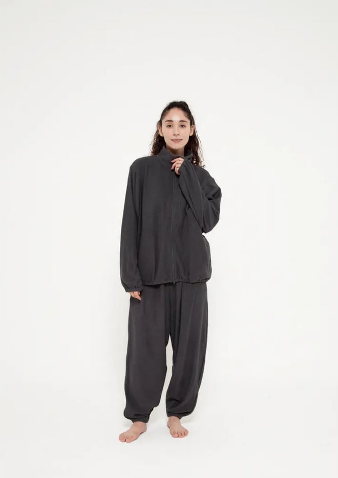 サウナでととのった心身をやさしく包み込む、両面パイル編みの柔らかなタオル生地で作ったジップジャケット。