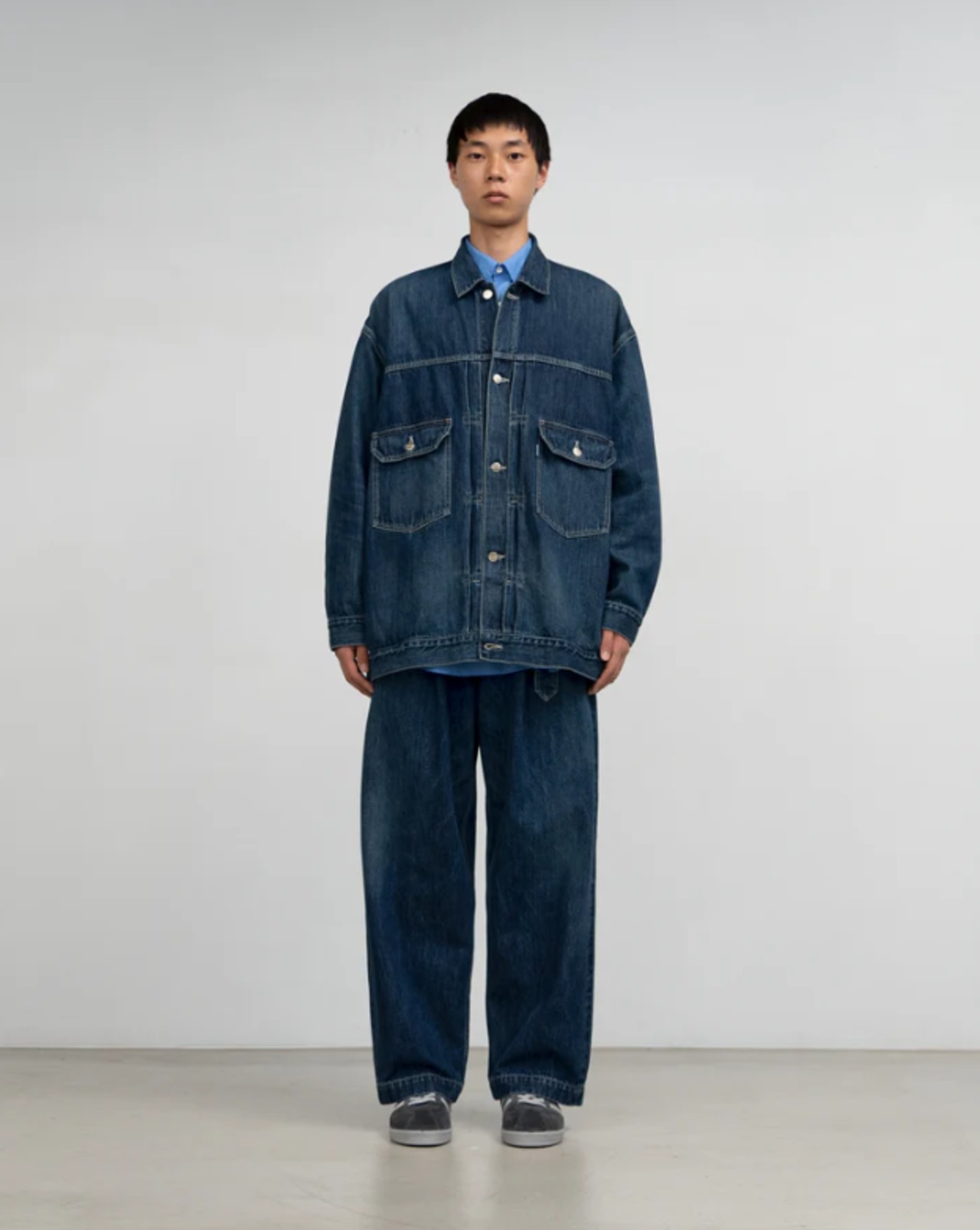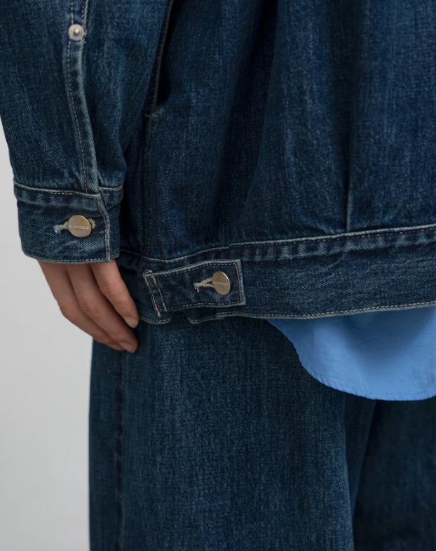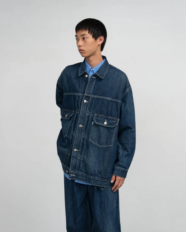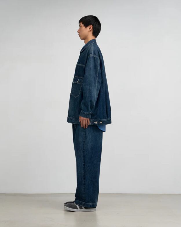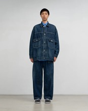 130年もの歴史を誇る米国Cone Denim社が作る13.75オンスのセルビッチデニム。旧式力織機でゆっくりと織り上げることで生まれる、生地表面のざらっとした凹凸やムラがデニム本来の風合いを感じさせる魅力的な素材です。’50年代に誕生した往年のデニムジャケットのディテールを継承しながらも立体的にボリュームのあるシルエットを構築。ロゴの刻印入りのタックボタンと襟ぐりにはクリーンなヌメ革のパッチを施しました。ダークフェイドカラーはメリハリのある濃淡が特徴です。