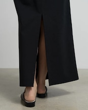 布帛のように見えて縦横に伸びるストレッチ性でストレスのない穿き心地を実現したラップデザインのロングスカート。ハイゲージ編みのオリジナルポンチ素材を使用し、光沢とハリのある上品な佇まいに。きちんと見えするフロントベルトに対し、後ろはゴム仕様で快適なフィット感を叶えた一着。