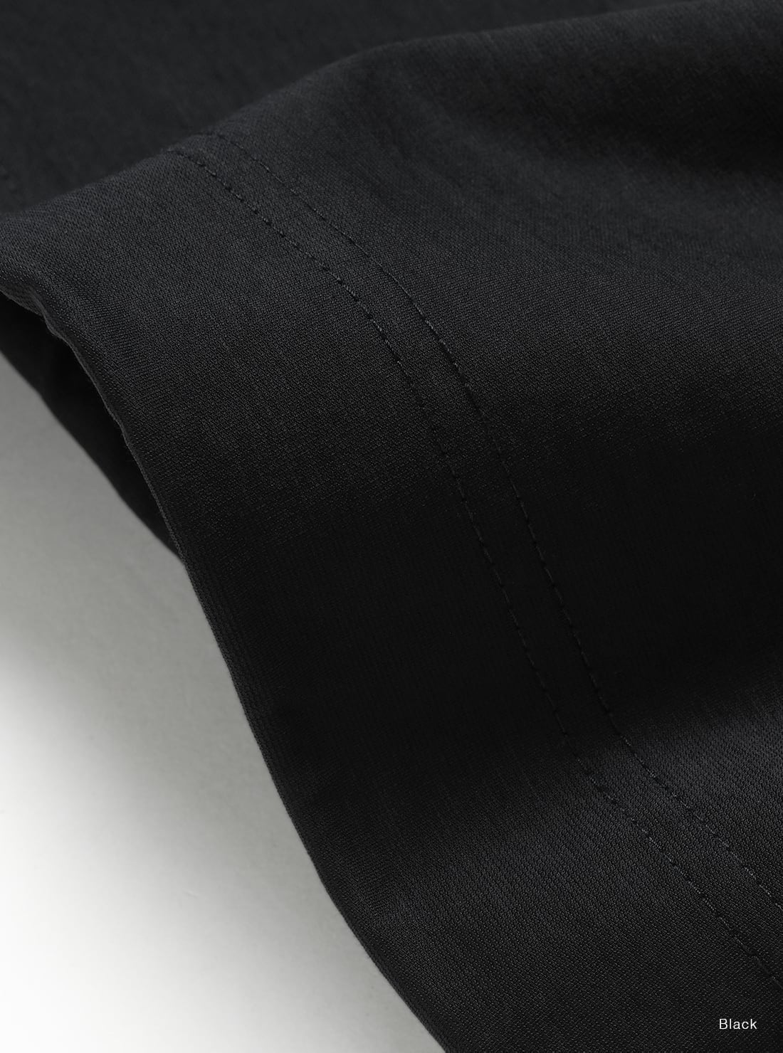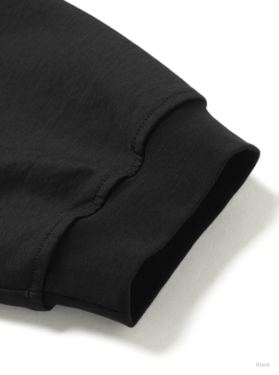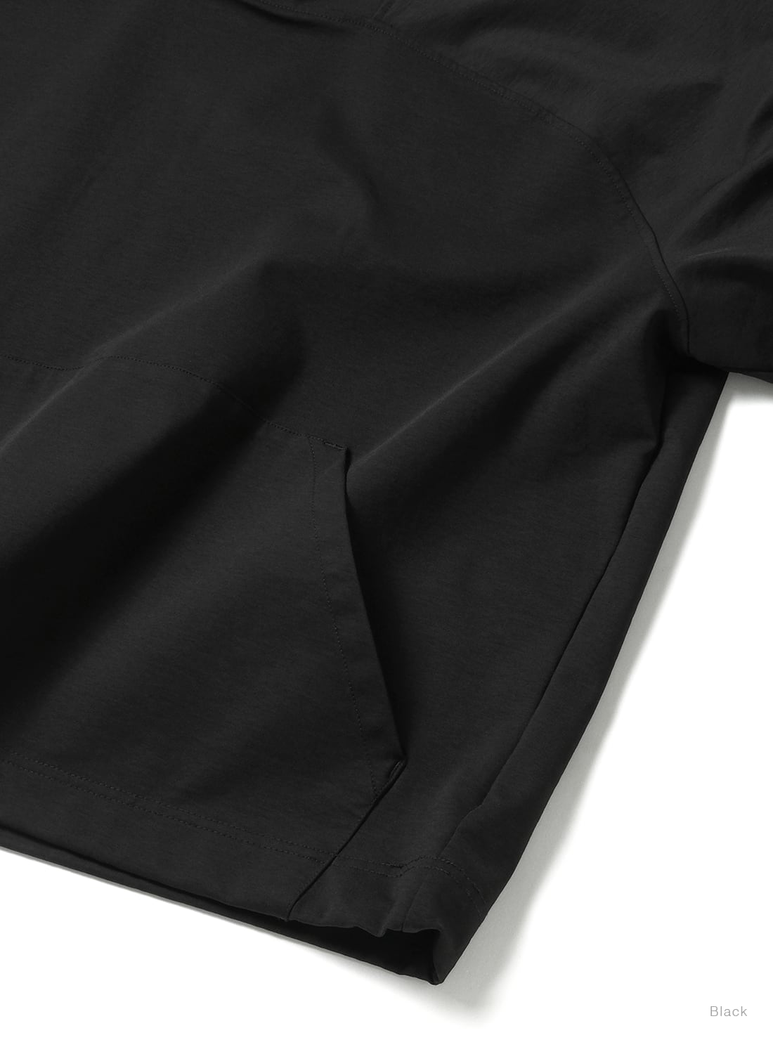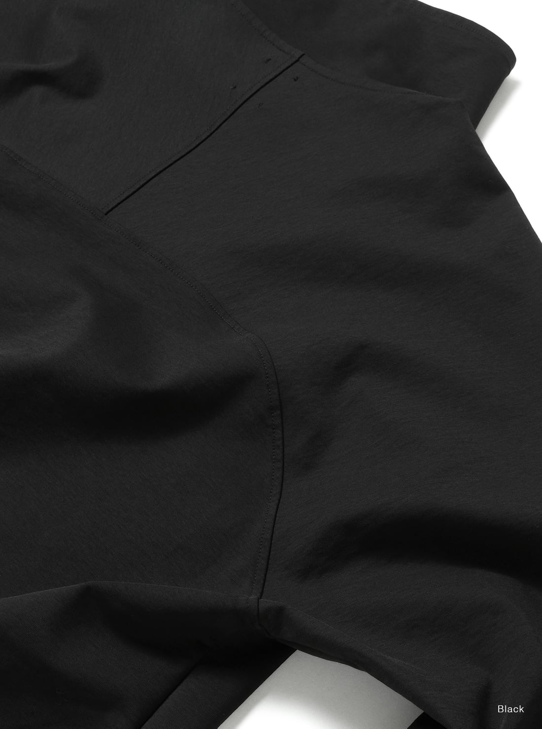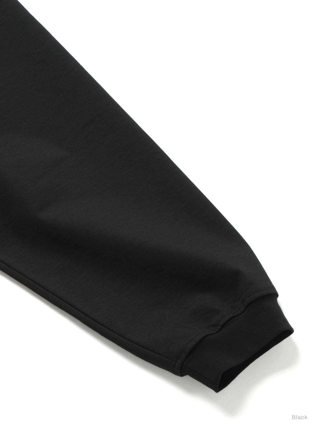 極細番手のスーピマコットンに、伸縮性と耐久性を高めるナイロン糸をブレンド。スムース編みを採用し、超ハイゲージの編機で丁寧に編み上げた生地を使用。サラリとした肌触りと、日常使いにも適した耐久性が特徴の商品です。両サイドの裾にドローコード付きで調整可能。昨年はフルジップ仕様でしたが、今季はハーフジップタイプでの展開となります。