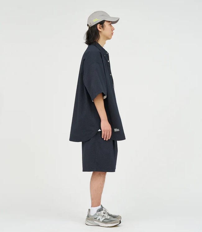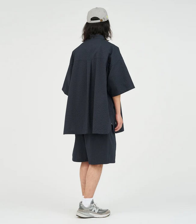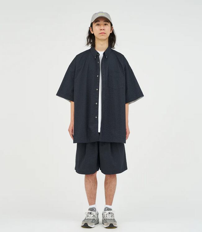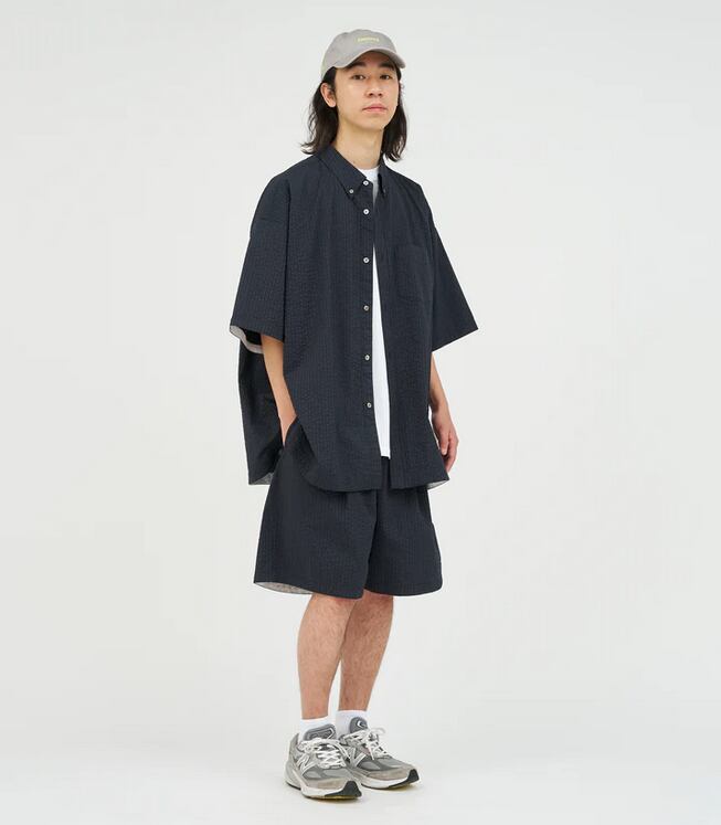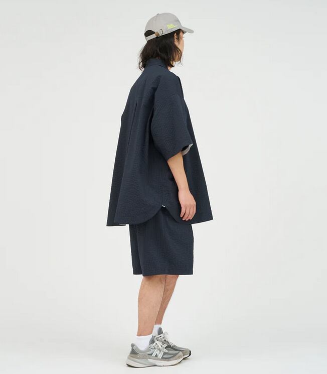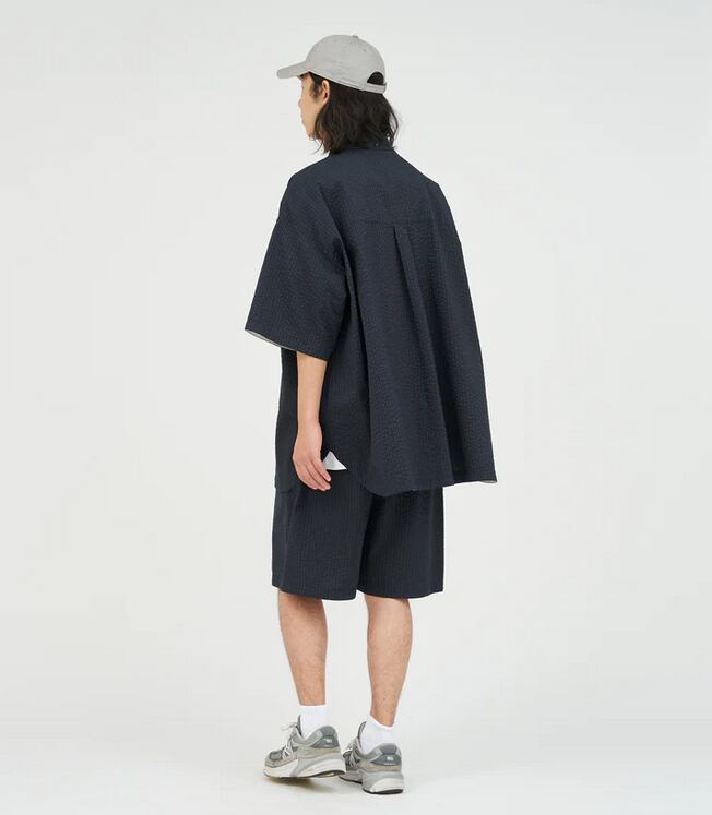 同素材の“SEERSUCKER MARINE JACKET”や"SEERSUCKER S/S B.D SHIRT”とのセットアップでの着用もおすすめ。
