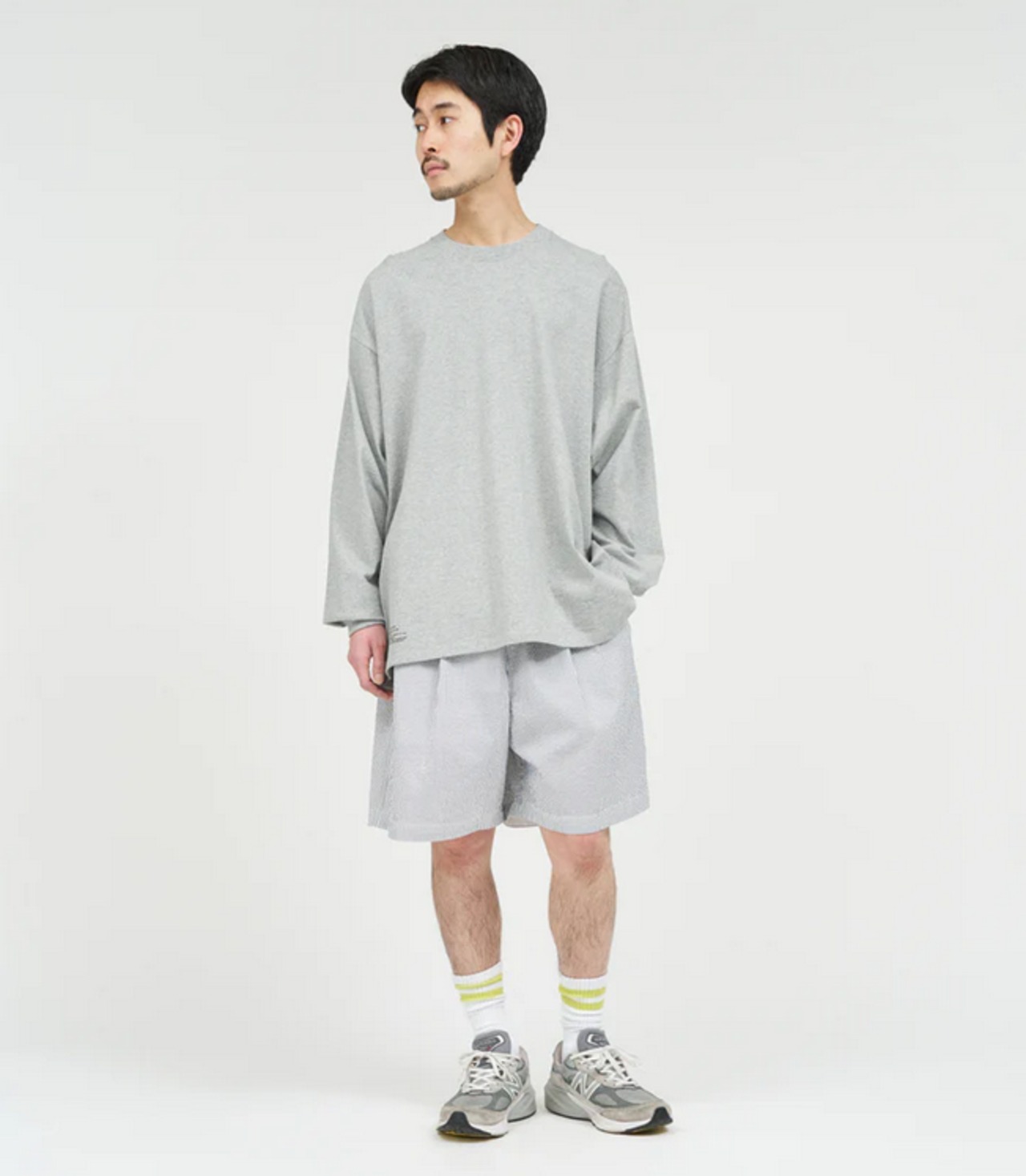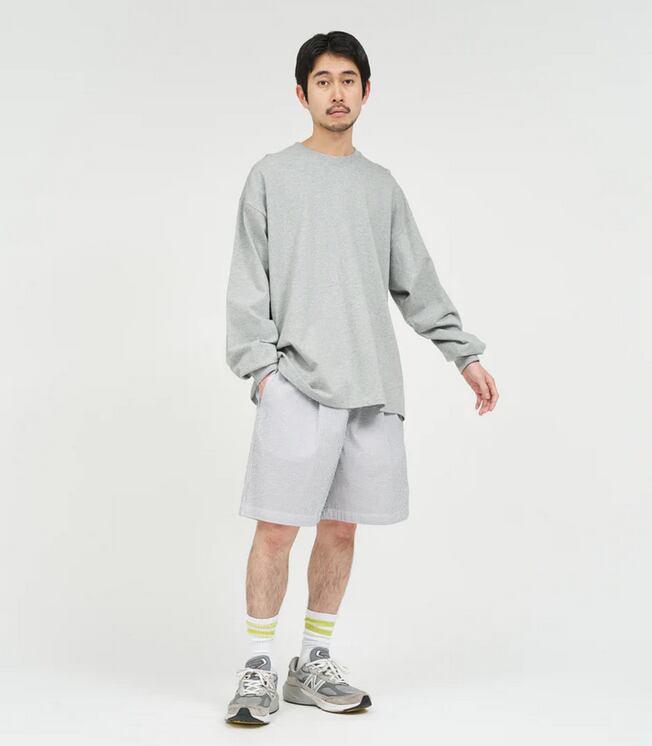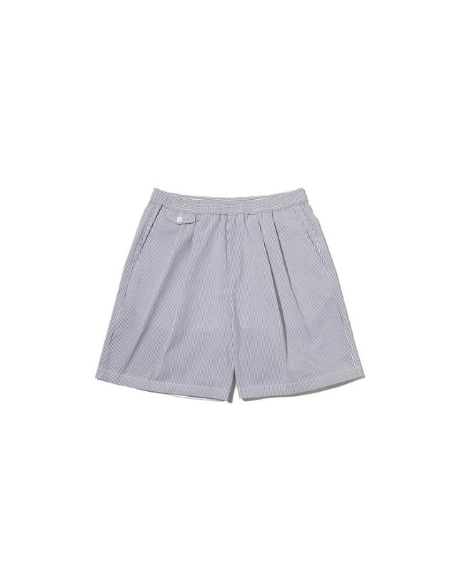 清涼感のあるシアサッカー素材で仕立てた、軽快さと品の良さを兼ね備えたイージーショーツ。COOLMAX®糸を使用したシアサッカー生地は、汗ばむ季節でもドライな穿き心地をキープし、軽やかな着用感が魅力。イージーショーツはタック入りの設計とゴムウエストにより、リラックス感がありながらもどこかプレッピーな佇まいに。暑い季節のスタイリングを、軽やかに、そして快適に楽しめる一本です。