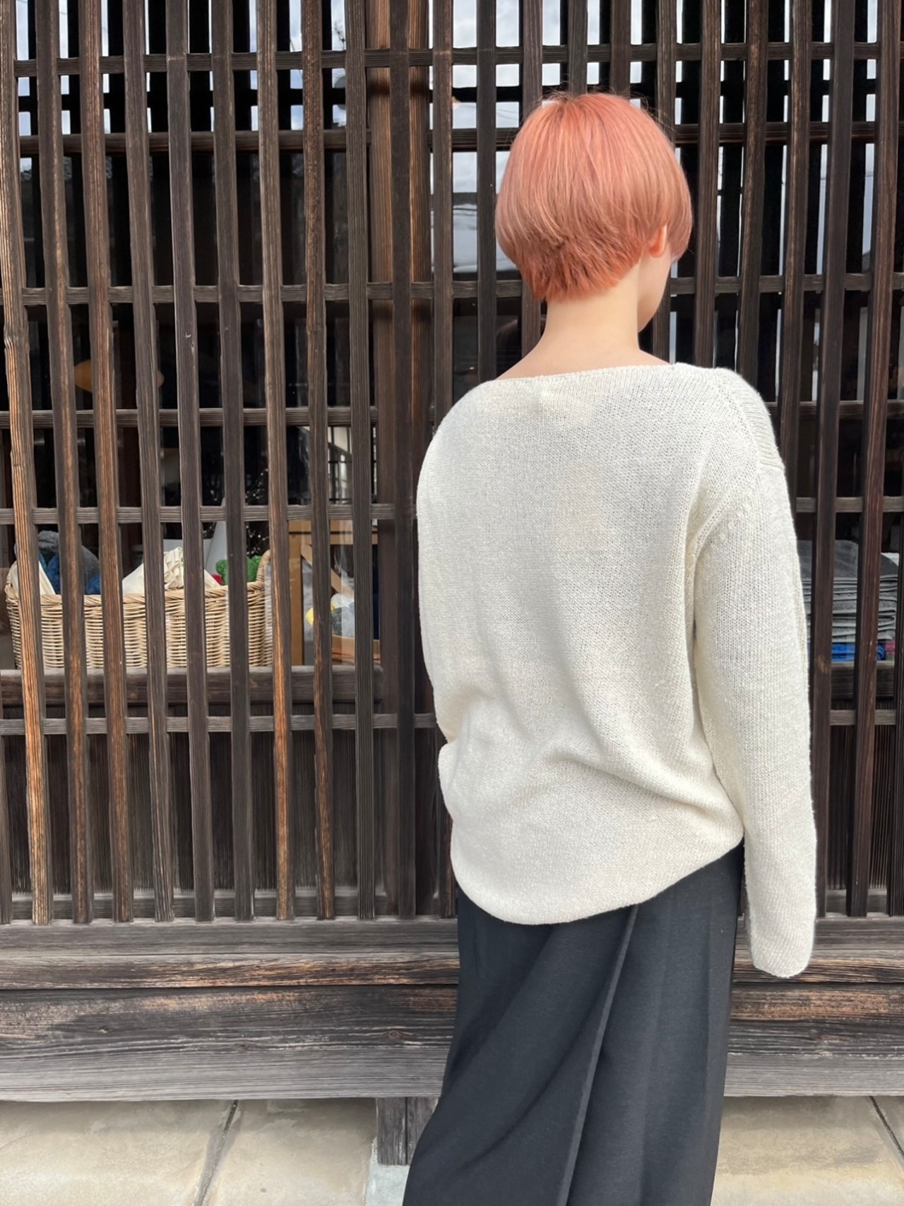 5Gの糸で編んでいるので、すこしざっくりとした落ち感のあるシルエット。