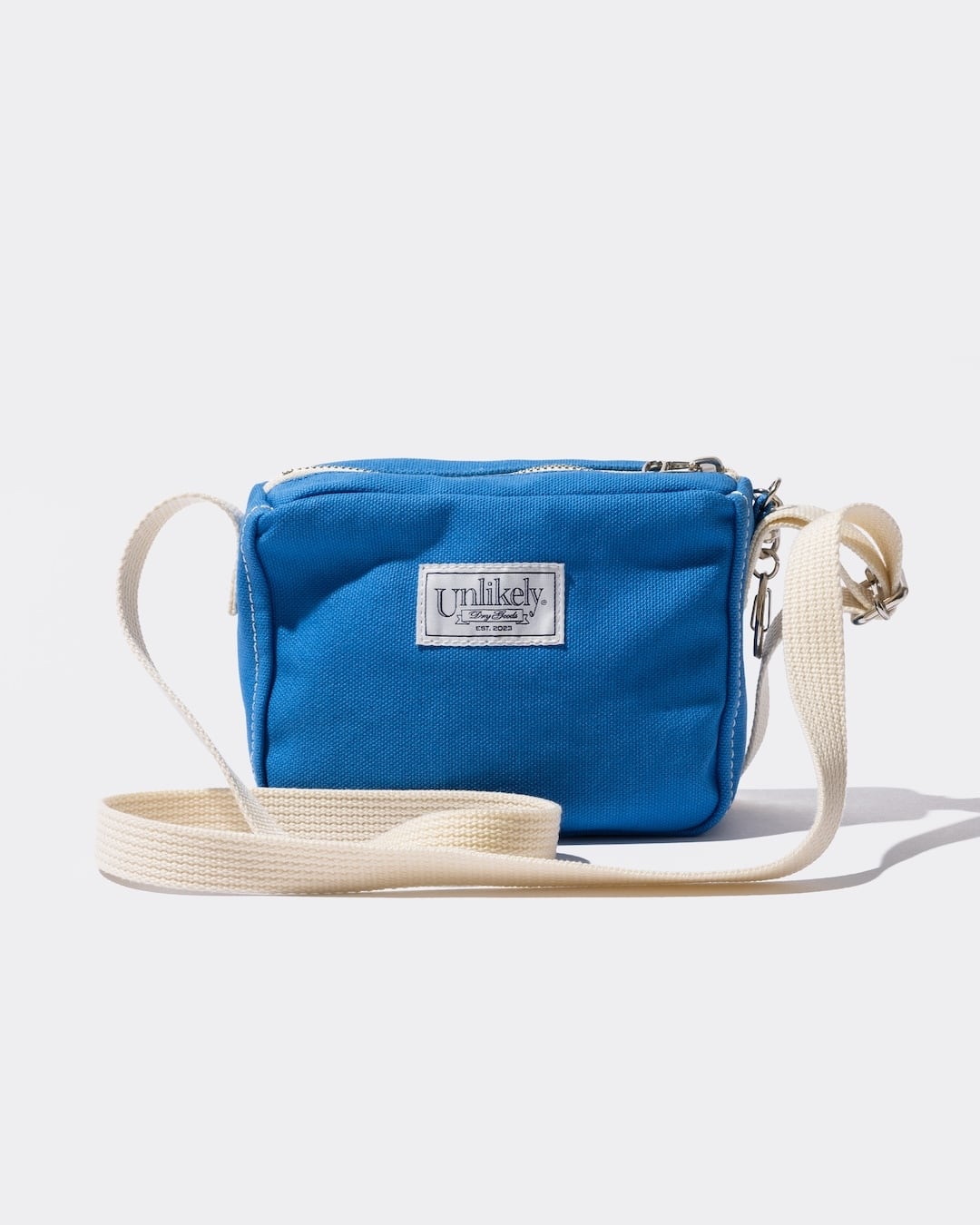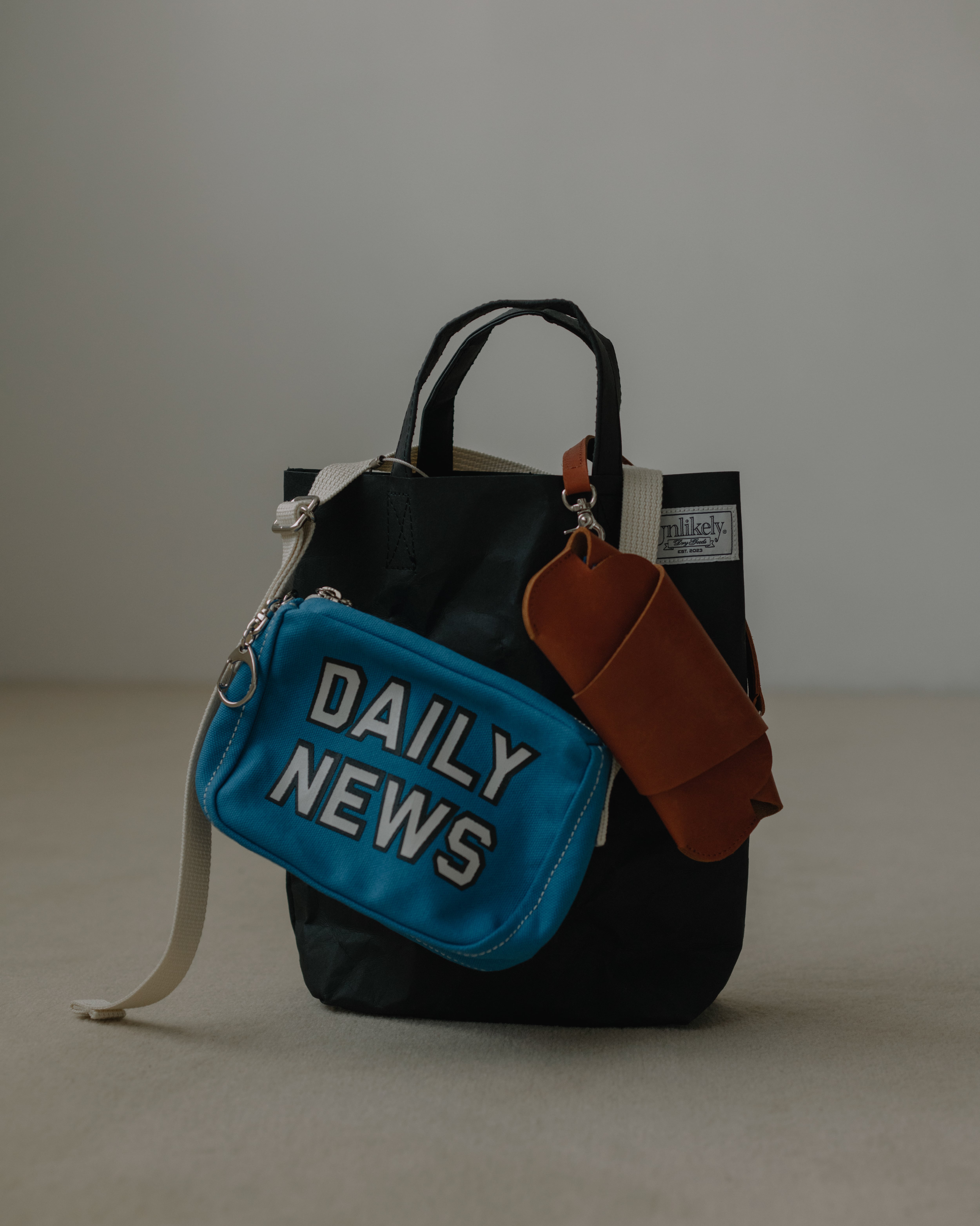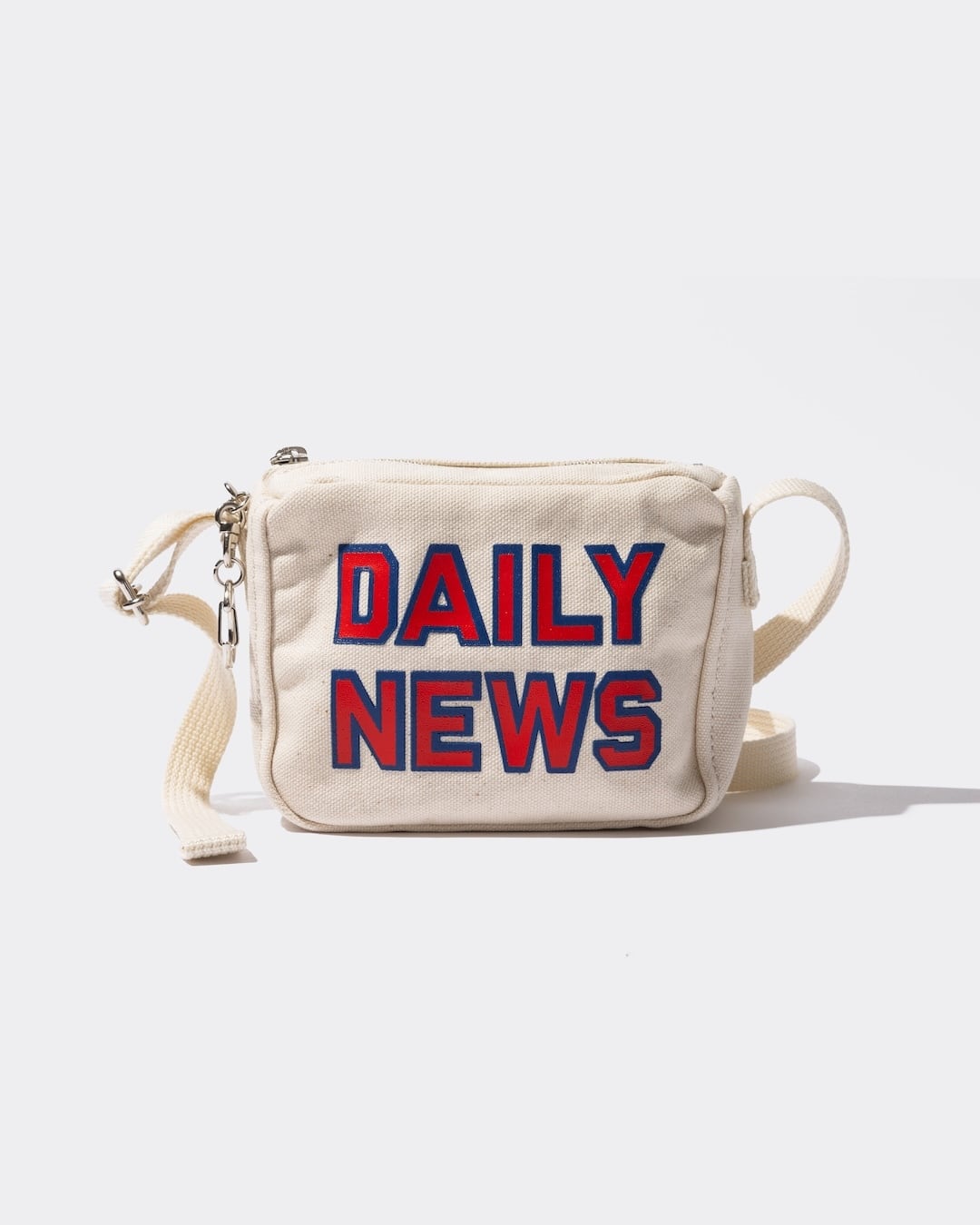 アンライクリーのメッセンジャーバッグ。1980年代のジッパー付きニューズペーパーバッグをミニサイズに縮小。小さくてもオリジナルの雰囲気を残すために、小さいながらもオリジナルに近いデザインで作成。生地はあえてクラシカルな表情を持たせるため、ベーシックなコットンキャンバスを使用。オリジナルの雰囲気をそのままにフロントに”DAILY NEWS”の厚盛りラバープリントを施しています。