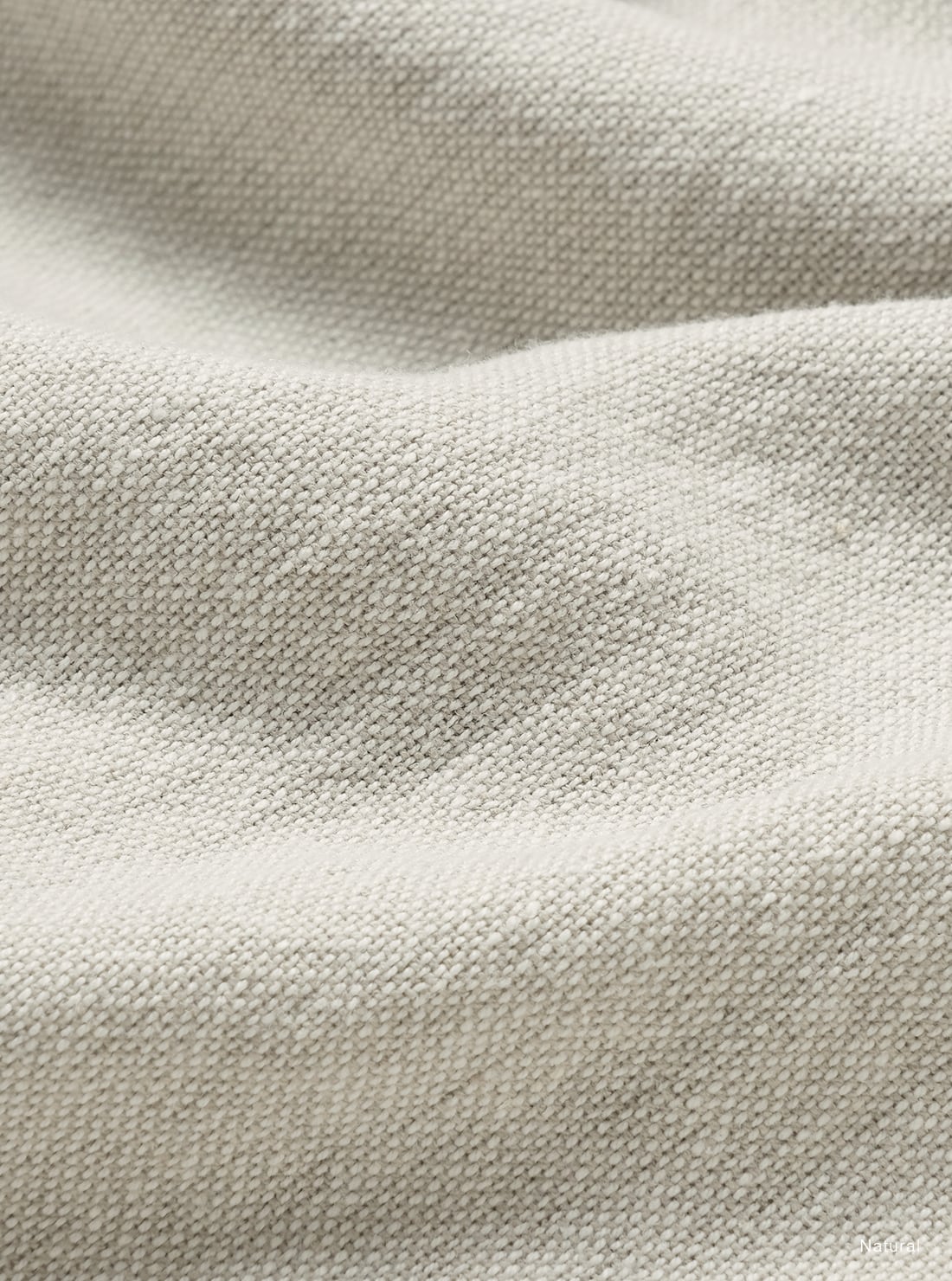 リネンの紡績過程で生まれる落ちわたを糸にし、強撚で仕上げたホップサック生地を使用。
