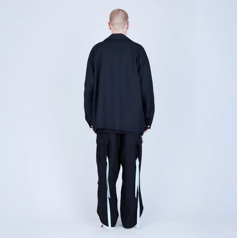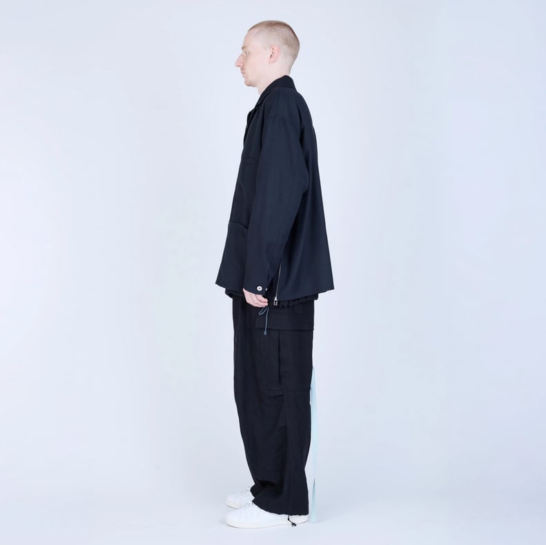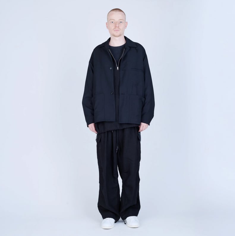 An original UNTRACE cord loop on the back of the collar allows for wearing as a stand-up collar. The front patch pockets feature concealed snap buttons to prevent the front from drooping, and every detail has been carefully designed.