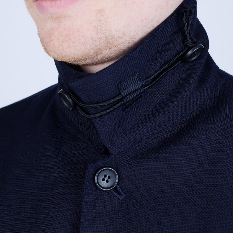 さらに、襟裏にはUNTRACEオリジナルのコードループを設け、スタンドカラーとしての着用も可能に。