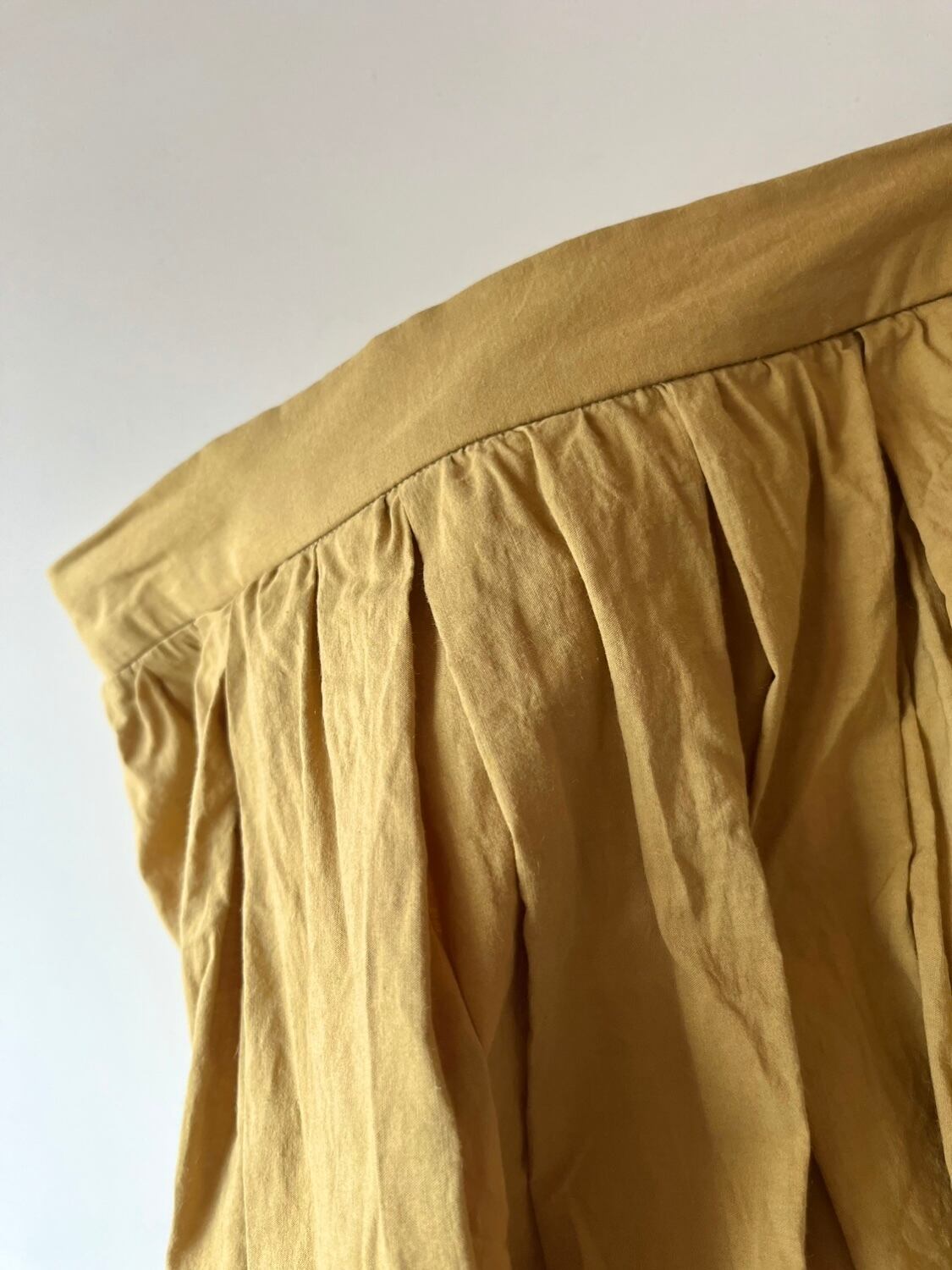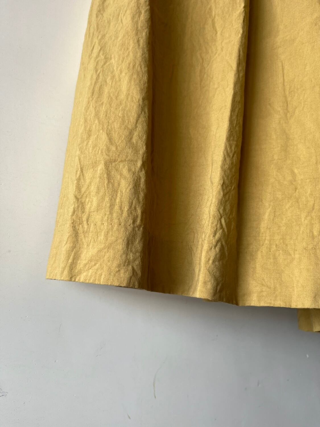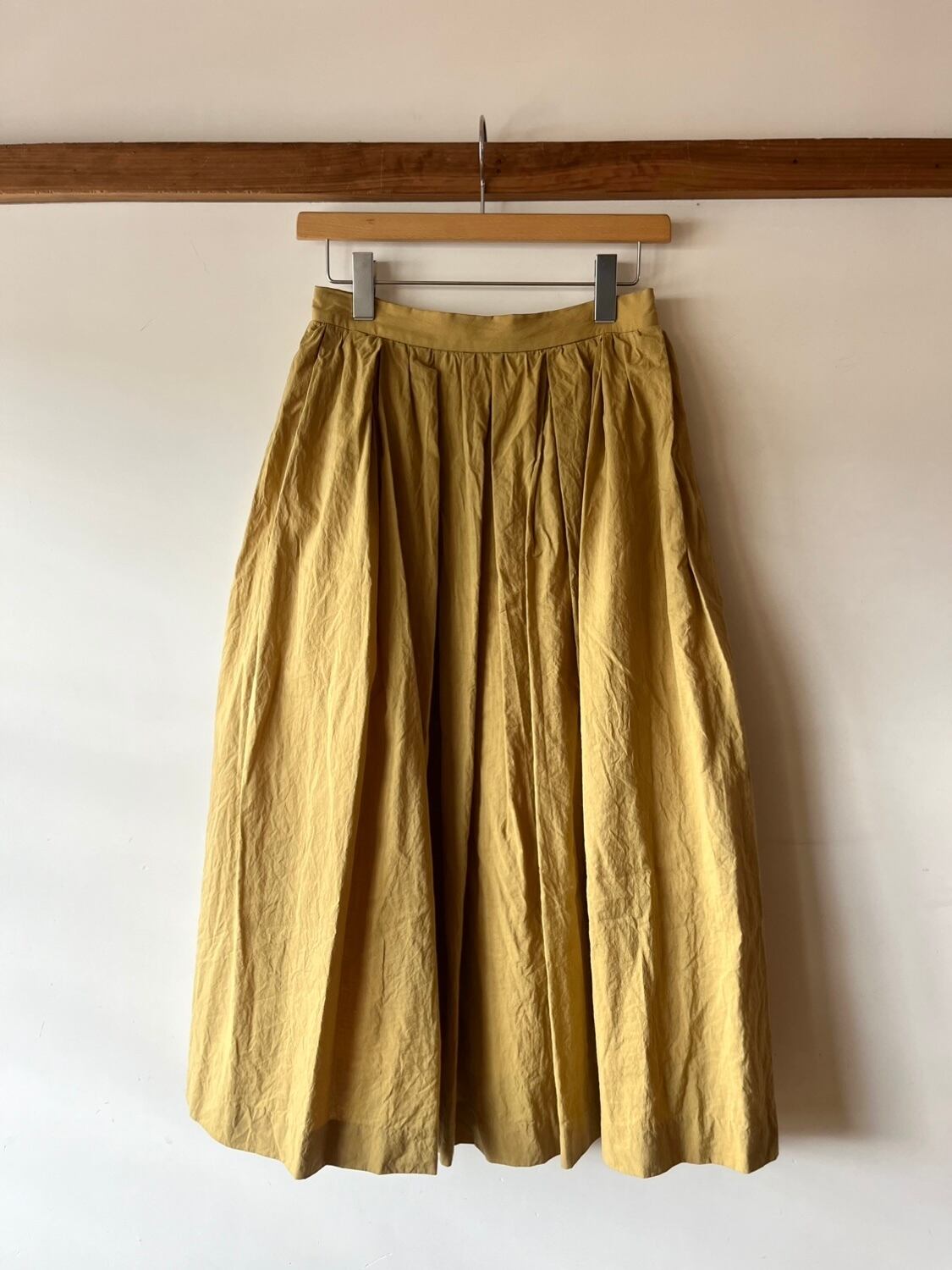 大きく大きく取った生地にタックを作り、ギャザーを寄せたクラシックなスタイルのスカートです。