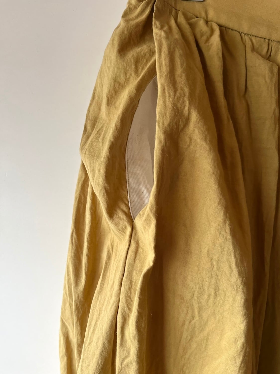 こちらは草木染めのカーキ。柚子で染めあげています。