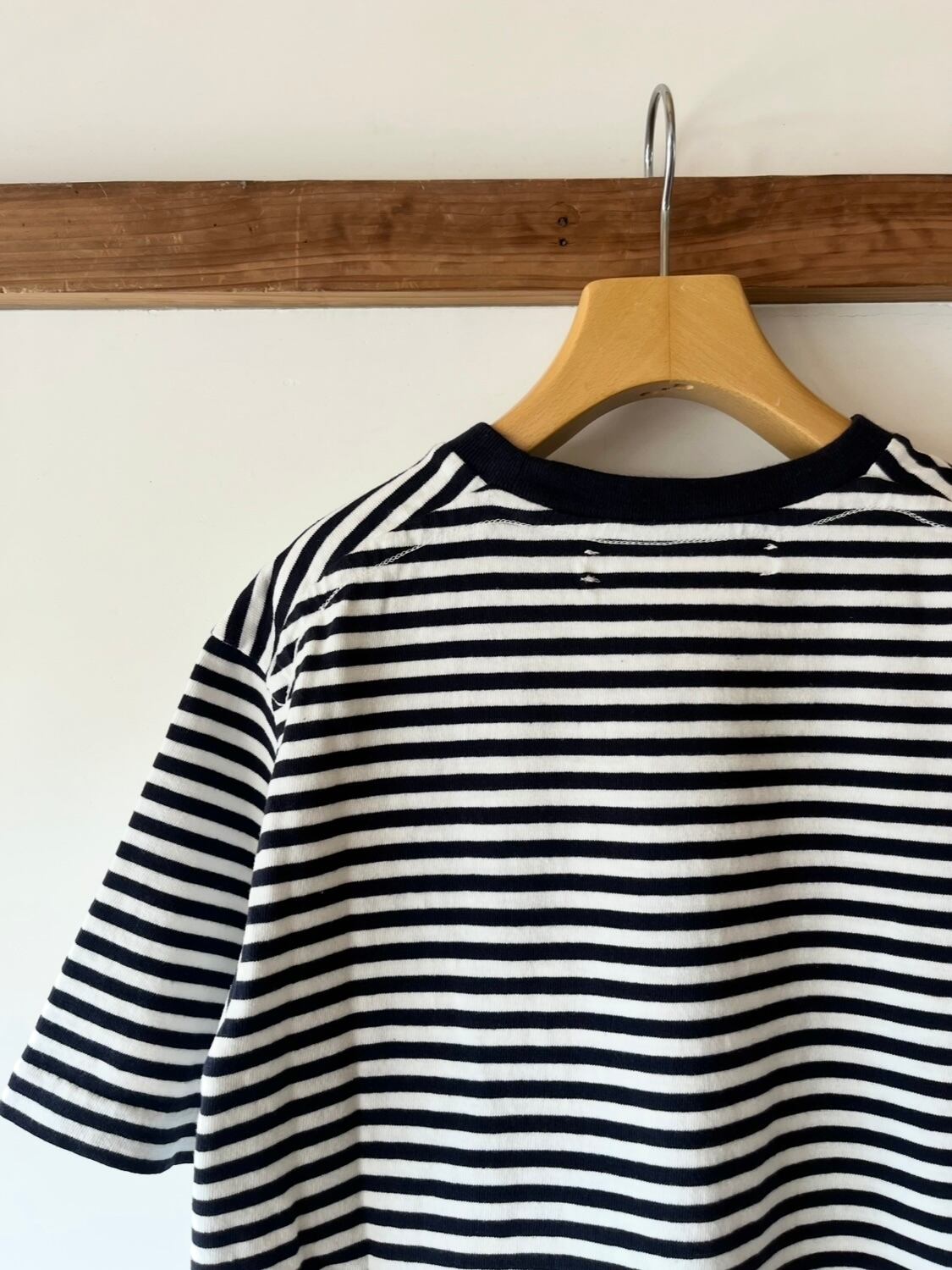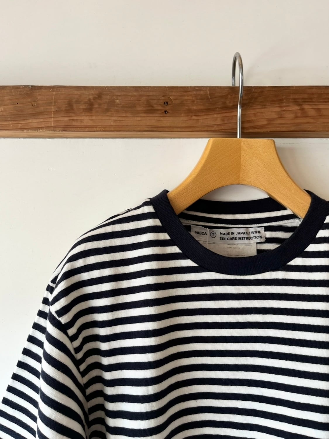 糸を作る工程で生まれる「落ち綿」を再利用した綿糸を使用しています。環境にも配慮した一枚。