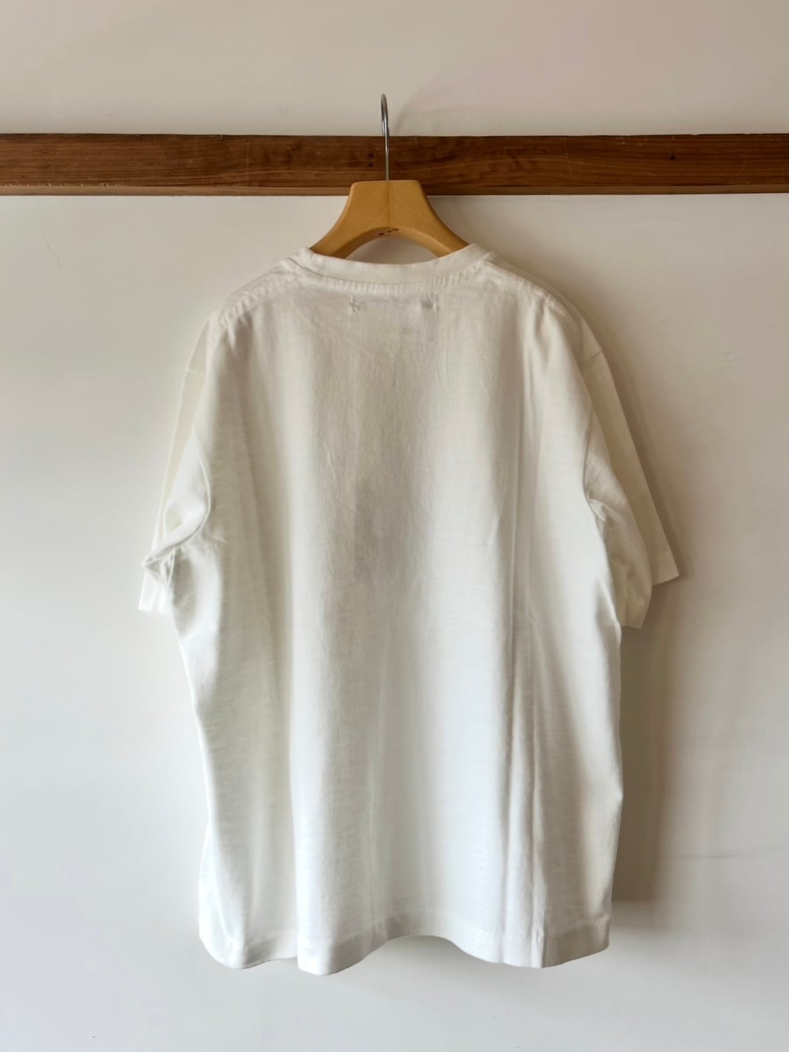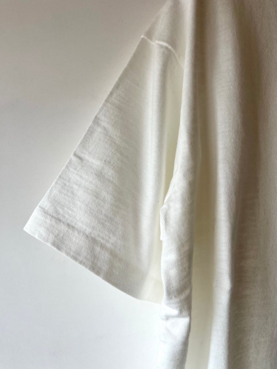 太さの異なる落ち綿を集めて再度紡績することで、スラブ特有の自然なムラ感と表情のある生地に仕上げています。柔らかいけれど程よい厚みがあり、物足りなさを感じません。