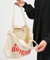 FRIEND EDITIONS × FreshServiceのコラボレーションによって生まれたコットンキャンバスのトートバッグ。ミニマルながら存在感のあるグラフィックが、ブランドらしい世界観を感じさせるデザインです。間口はジップ仕様でしっかりと閉じることができ、内側には鍵や小物の収納に便利なファスナー付きポケットを配置。日常使いにちょうどよいサイズ感で、荷物の整理もしやすい実用的な一品に仕上がっています。