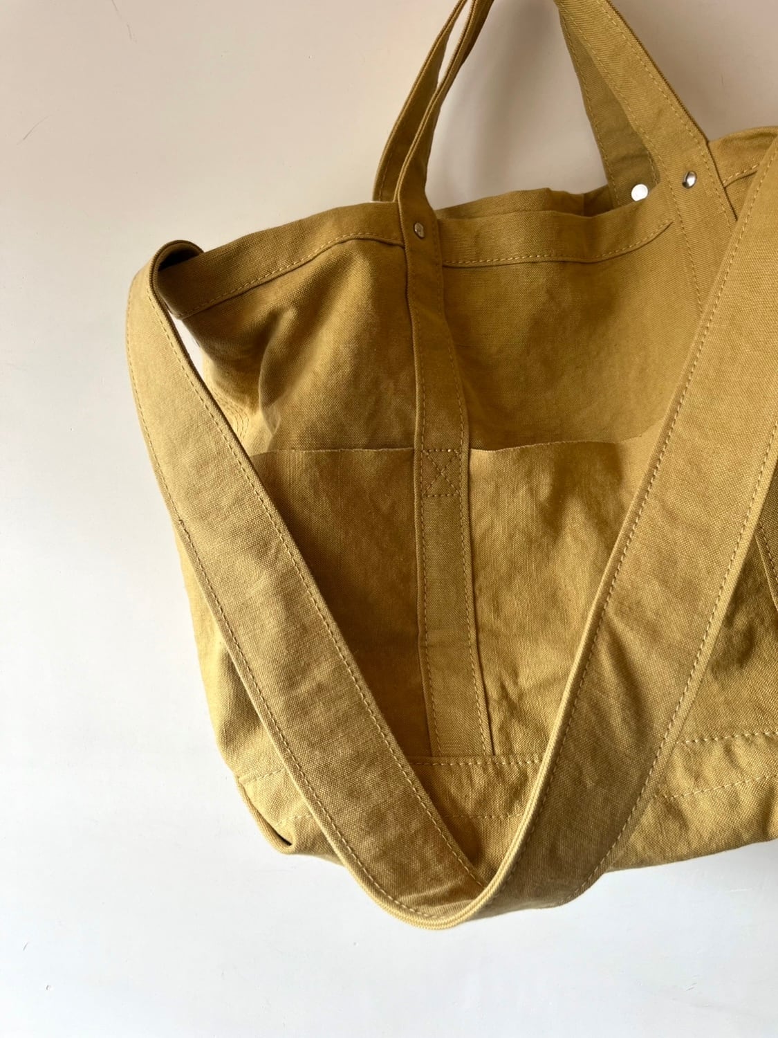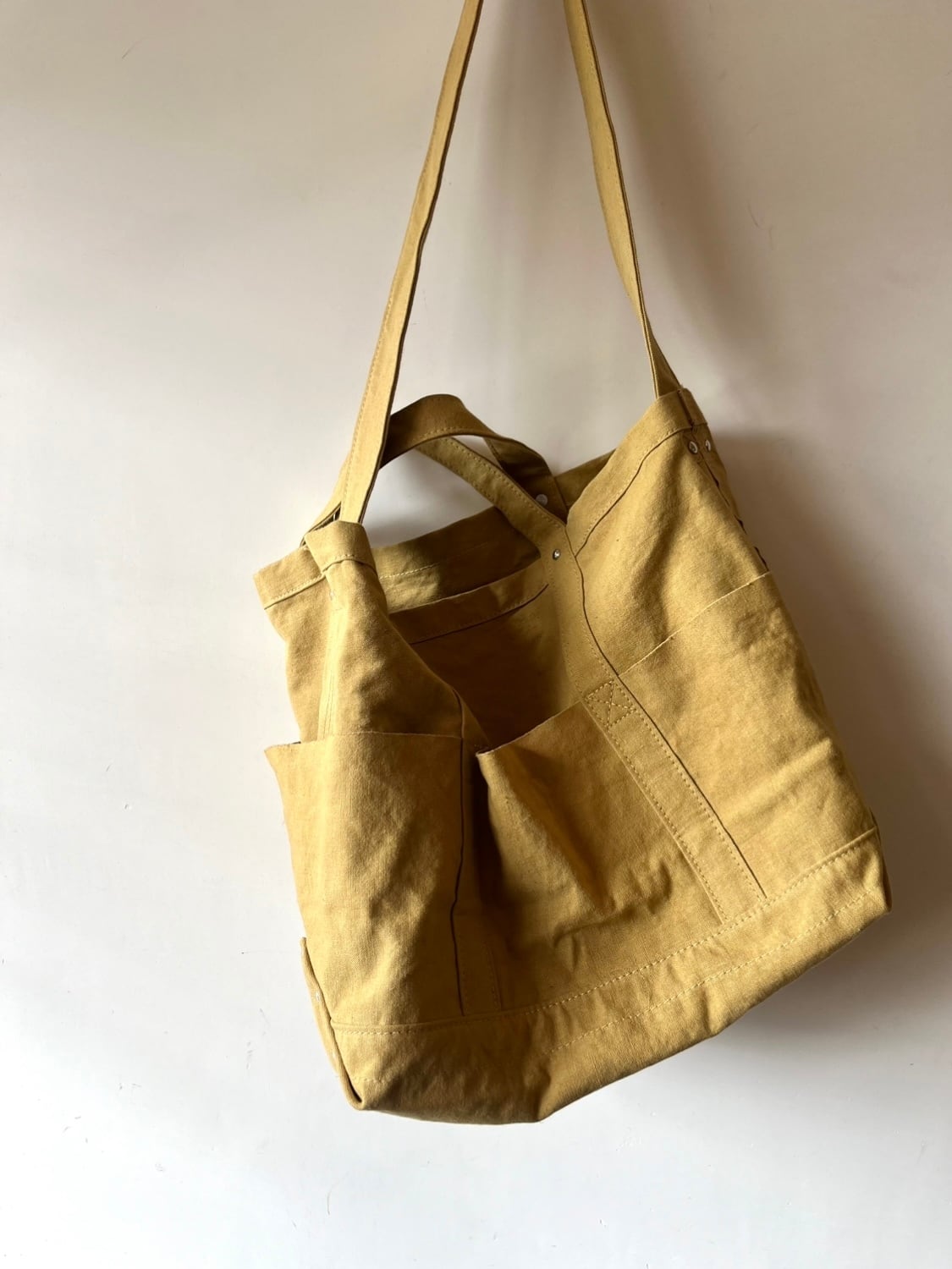 英国の庭師の使うバッグをモチーフにして作った丈夫なトートバッグです。外側と内側にポケットがついています。