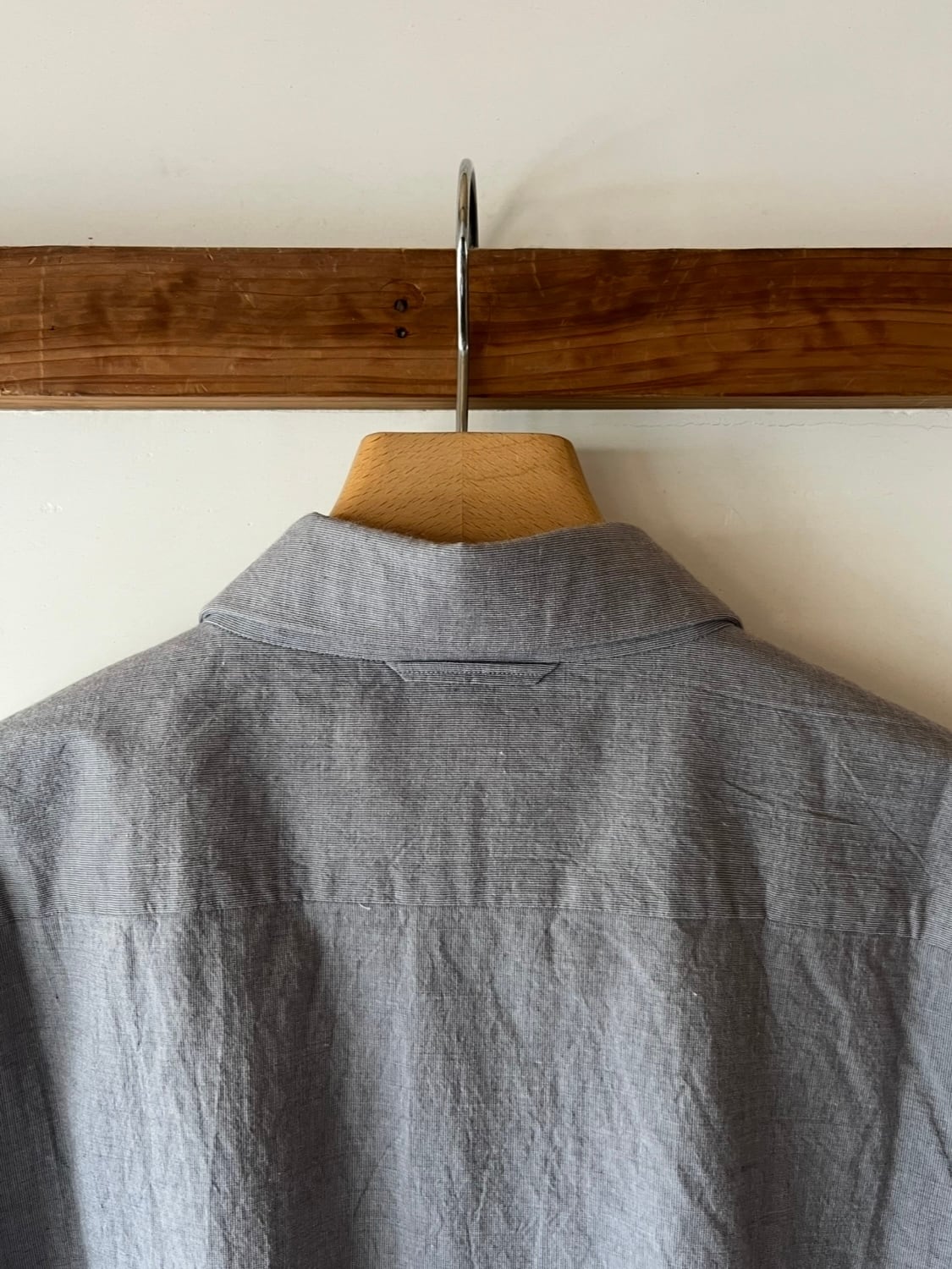 身幅も大きく、着丈も長め。大きなシルエットだけど、どこか品のある。ゆったりと大きめに羽織るのが気持ちいい、YAECA定番のボタンシャツです。