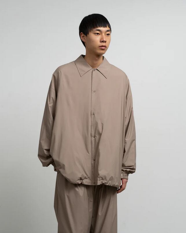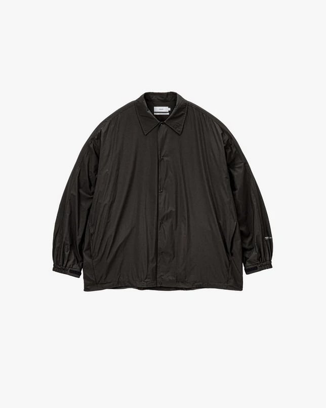 リラックス感のあるシルエットのオーバーサイズシャツ。超軽量でストレッチ性に優れ、高い通気性・透湿性に加え耐摩耗性も兼ね備えたPERTEX® QUANTUM AIRを使用。ヨークからひと続きになった袖構造と丸みのあるフォルムが特徴で、裾のドローコードによりシルエットの調整も可能な、コーチジャケットディテールの一着。