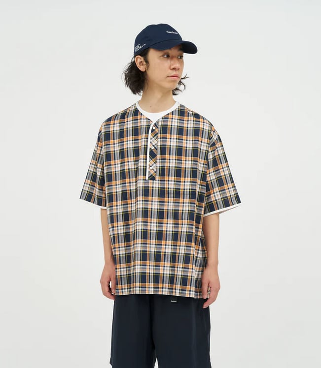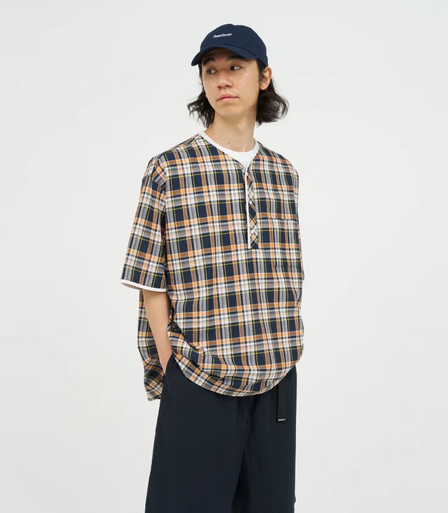 HENLEY NECK DEPARTMENT Albert ORANGE × YELLOW MADRAS PLAID HD261-50008