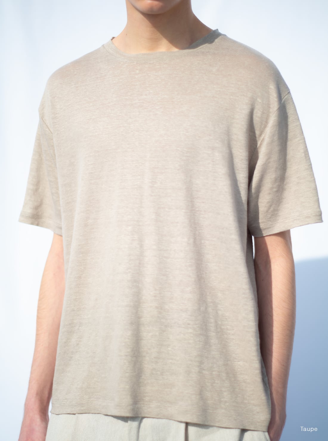 良質な理念の産地として知られる、フランス北西部ノルマンディー地方のリネンを使用。甘めの天竺組織でシンプルに編み立て、強く洗いをかけることでしなやかなドレープ感と軽く柔らかな肌触りの商品。衿元はタコバインダー仕様。
